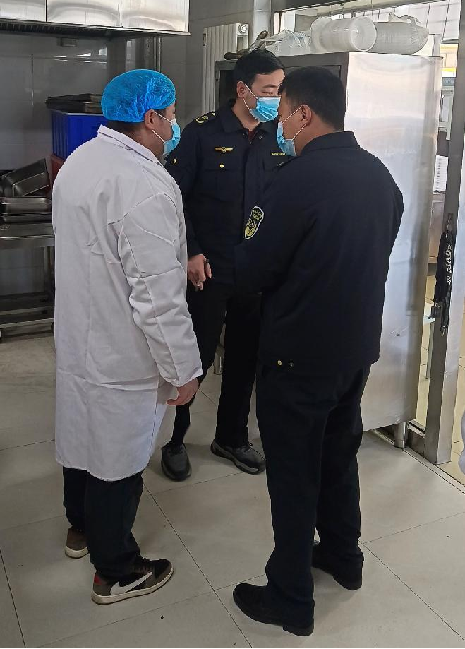 3月1日,新城区海东路市场监督管理所工作人员来best365指导食品安全工作,校党委委员、副校长刘瑞鸿陪同检查。