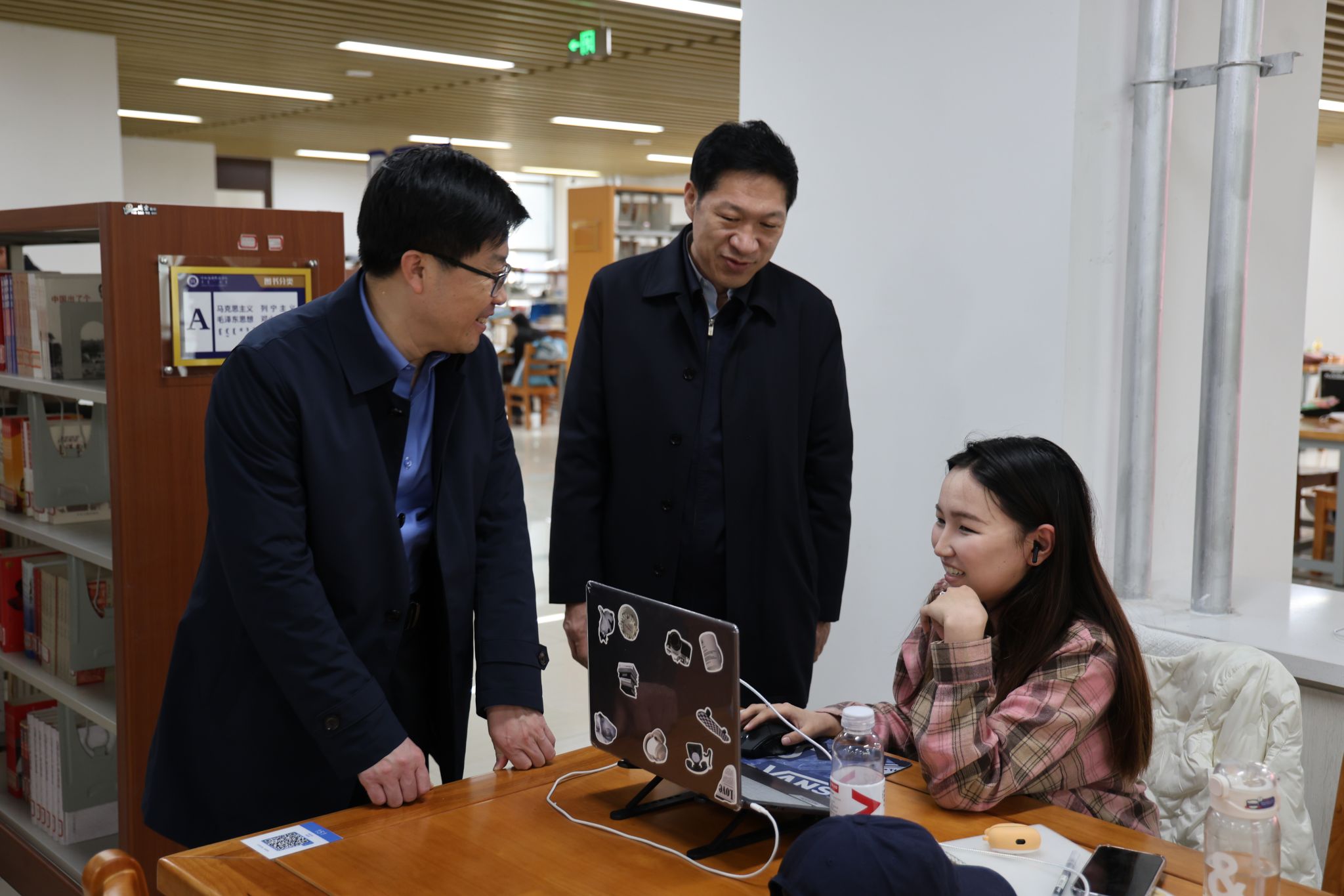 为进一步落实好立德树人根本任务,全面抓好校园安全稳定工作,3月18日下午,校党委书记刘九万,党委副书记、校长韩伟新,党委委员、副校长刘瑞鸿一行深入图书馆、工会之家、老干部活动中心等地实地走访调研,与相关人员进行深入交流,全面了解学生学习读书、教职工文化生活和离退休人员娱乐活动情况,检查指导图书馆、工会、离退休人员工作处开展服务保障工作情况。