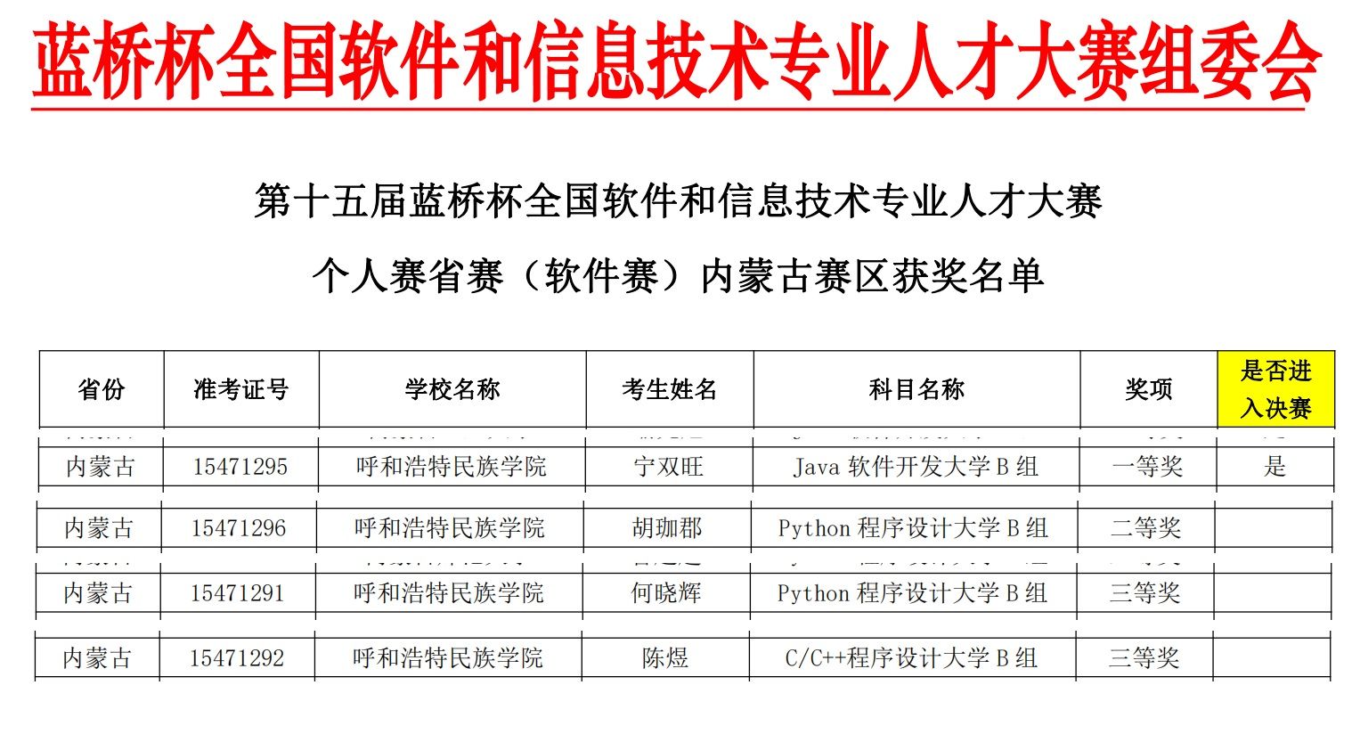 本届大赛分为个人赛和团队赛两大项,best365选手参加了软件类个人赛,其中计算机科学学院的宁双旺同学荣获Java软件开发组一等奖,胡珈郡同学荣获Python程序设计组二等奖,陈煜同学荣获C/C++程序设计组三等奖,何晓辉同学荣获Python程序设计组三等奖的佳绩。宁双旺同学将代表学校参加第十五届“蓝桥杯”全国软件和信息技术专业人才大赛——个人赛国赛(软件类)。