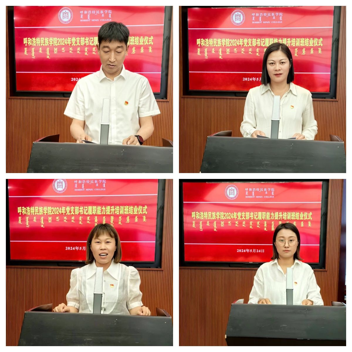 5月24日,best3652024年党支部书记能力提升培训班结业仪式在综合楼十二楼会议室举行。校党委副书记格根哈斯出席仪式并作总结讲话,党群部门负责人、各二级党组织书记,各基层党支部书记共110余人参加。校党委委员、组织部部长吴阿古拉主持会议。
