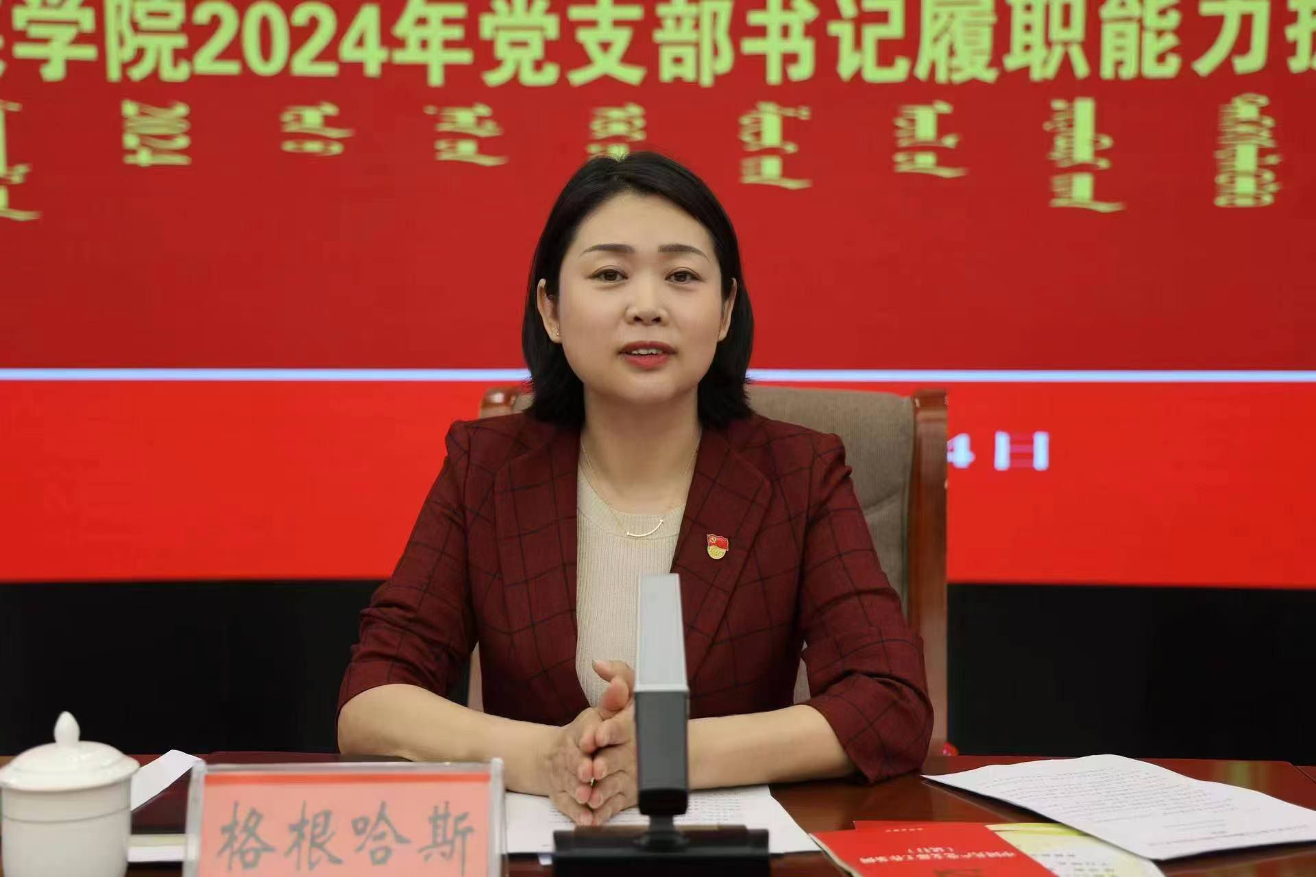 格根哈斯指出,党支部是学校最基层的党组织,其作为联系党和师生的纽带,是贯彻落实党的各项路线方针政策、推进新时代党的建设伟大工程的基本载体。一个支部就是一座堡垒,支部书记就是支部的第一责任人。基层支部书记的能力和素质,不仅是党的建设成效的体现,更是执政效能的检验,培训和交流是党支部书记能力建设、素质提升的重要方法和手段。她希望全体党支部书记,一要加强学习,提高党支部书记队伍的整体素质,在具体工作中,要努力提高发现问题、思考问题和破解难题的能力,进一步找准工作中欠缺的地方,找出解决问题的办法,实现促进学校党建工作水平的提高。二要创新党务工作的方式方法。党支部书记要抓好基层党务工作,一方面,要明确目标、任务和责任,切实解决好重点问题和薄弱环节,以点带面,促进整体提升。另一方面,要结合各自学科专业特点,创新方式方法,运用改革创新的眼光和科学有效的办法,创新理念、拓宽思路,打造“一院一品”基层党建品牌。三要树立求真务实的工作作风。要实实在在做事,杜绝空谈、懈怠之风,保持勇于担当的锐气和勇气,努力养成埋头苦干,严谨细致,求真务实的工作作风。要把学习和思考问题结合起来,同调查研究结合起来,同落实具体工作结合起来,狠抓工作目标和任务的落实,以高度的责任心把党的事业建设好。