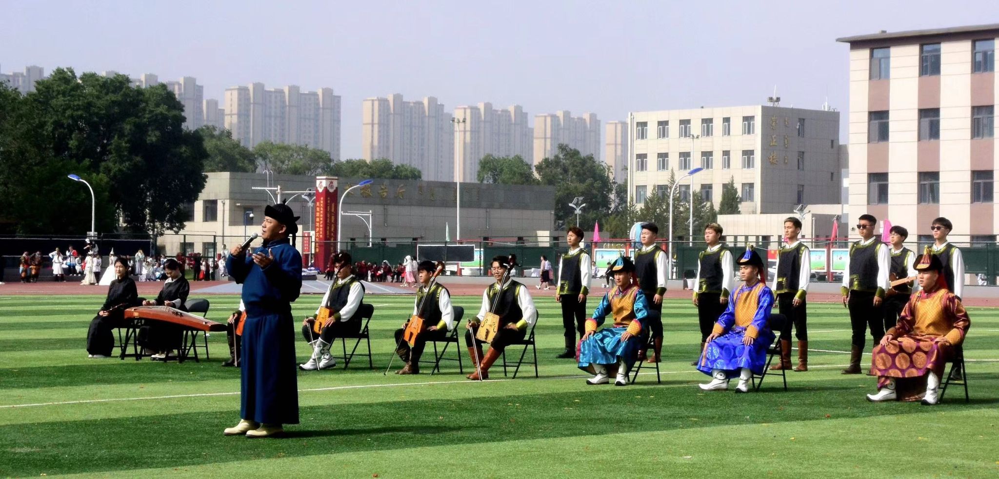 那达慕文化节精彩演出由685名青年学子演绎的由民族歌舞、服装展示,男儿三艺传统项目竞赛等穿插进行的群舞《欢乐那达慕》拉开帷幕。长调《赞歌》、民乐合奏《马蹄飞扬》热情奔放大气豪迈,群舞《欢庆》、好来宝《奔腾的骏马》气势磅礴慷慨激昂,歌曲串烧《弹起心爱的好必斯》《我相信》,武术表演《舞动青春》将开幕式气氛推向高潮。现场观众被深深地感染,掌声、欢呼声此起彼伏。文艺节目的精彩纷呈,为广大师生献上了一场绚丽多彩的民族文化盛宴。