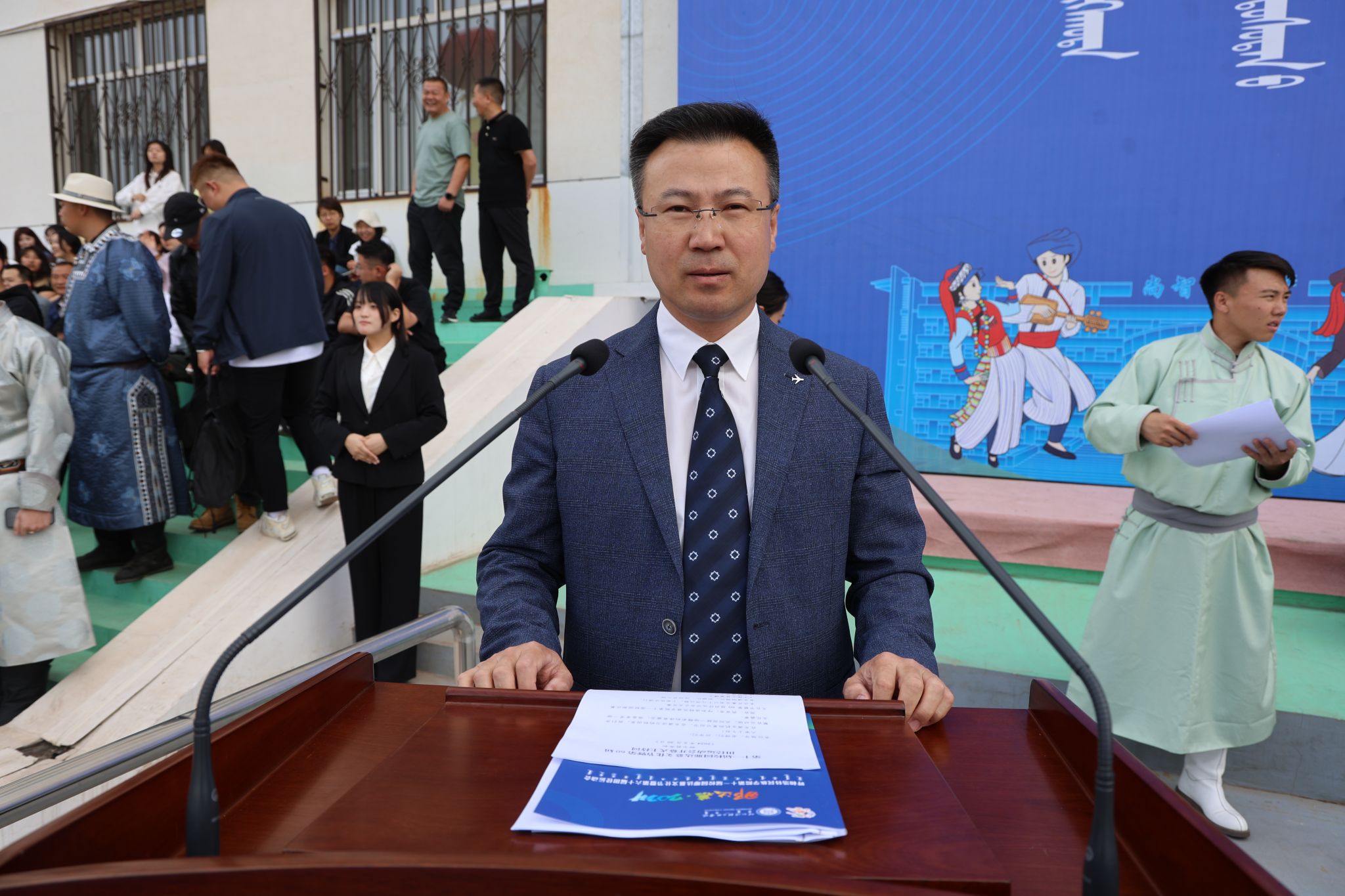 韩伟新致开幕词,向本次盛会的开幕表示热烈的祝贺!向全体运动员、裁判员、老师们、同学们致以亲切的问候!他指出,校园那达慕是自治区校园文化精品项目,也是best365以铸牢中华民族共同体意识为主线,促进各民族师生交往交流交融,构筑中华民族共有精神家园的主要载体。校园那达慕体现了中华优秀传统文化与社会主义先进文化的结合,传递了各民族师生追求团结、积极向上、奋勇争先的精神,书写了各族师生心向党、中华儿女一家亲的画卷。他表示,best365高度重视体育工作,在校园足球、武术、博克等方面保持佳绩。比如,学生男子足球队5次获得自治区大学生足球联赛冠军、蝉联2届全国青少年校园足球联赛季军;去年,武术队代表自治区获得了全国首届青年运动会银牌,今年在全国大学生武术套路锦标赛上获得冠军。他希望,广大师生在体育赛场上奋勇争先,赛出最好水平;在那达慕文化节上美美与共,展现最美风采;唱响弘扬中华体育精神、奥林匹克精神、蒙古马精神交相辉映的壮美新篇章;广大师生继续保持一往无前的奋斗姿态,保持自信自强的状态,在各自的赛道上跑出加速度,取得新突破,以优异成绩庆祝新中国成立75周年!