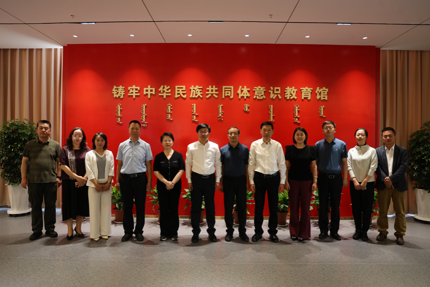 刘九万、韩伟新向黄海一行介绍了学校在贯彻落实铸牢中华民族共同体意识主线、推进“两馆两廊一园”阵地建设、加强铸牢中华民族共同体意识宣传、教育、研究等方面的情况。双方表示,要进一步加强交流,共同为全方位建设模范自治区、落实“五大任务”提供助力。