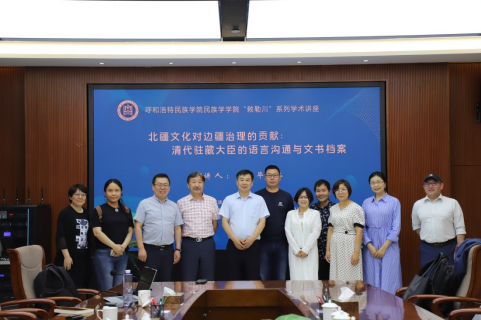5月28日,民族学学院在学校综合楼11楼会议室举办了“敕勒川”系列学术讲座。本次讲座邀请了中国人民大学国学院教授、教育部“长江学者”特聘教授乌云毕力格,其讲座题目为《北疆文化对边疆治理的贡献:清代驻藏大臣的语言沟通与文书档案》。