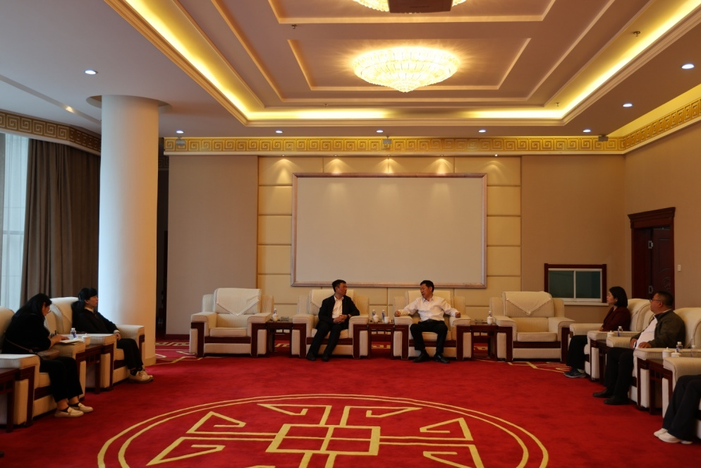 学校党委书记刘九万,党委副书记格根哈斯与宫国顺一行召开座谈会,双方就学校铸牢中华民族共同体意识教育馆建设、共同体概论课程建设、校园文化建设、展馆文化、教学实践、学生管理工作等方面进行深入交流。