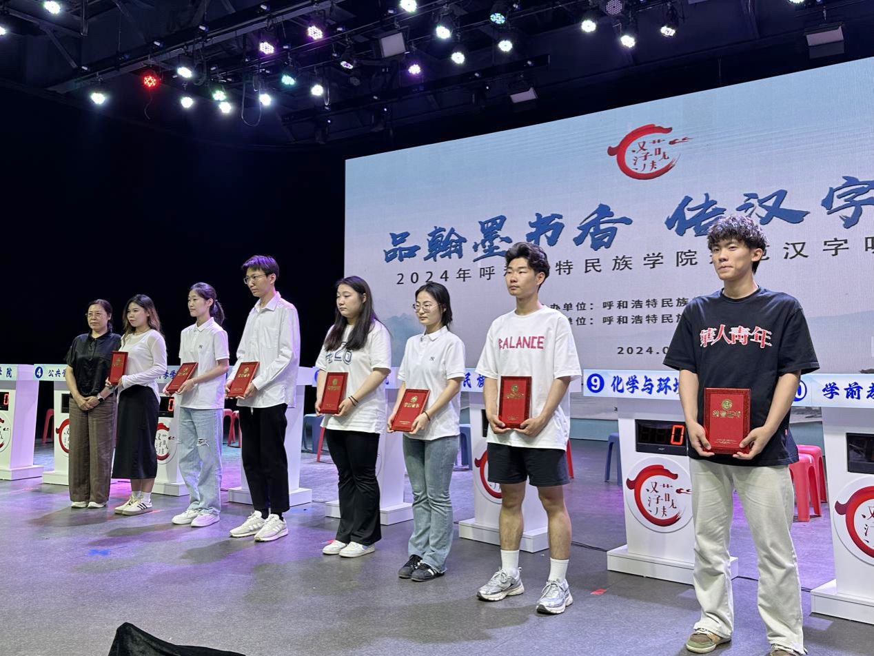 比赛设置“小试牛刀”“点字成诗”“字正腔圆”“眼疾手快”“狭路相逢”等环节。经过两个多小时的激烈角逐,公共管理学院夺得团体赛一等奖,文学院、经济管理学院获得二等奖,马克思主义学院、数学科学学院、外国语学院分别获三等奖。个人赛中,文学院冯馨丹摘得桂冠,周宇洁、郑楠、王艺洁获亚军,赵玉丽、赵书翌、欧新琴、王雪同学获季军。包冬梅、宝连、樊寒伟、李小鹏、雷旭平、朝格满都拉六位老师荣获优秀指导教师奖。与会领导和评委为获奖团体和个人颁奖。