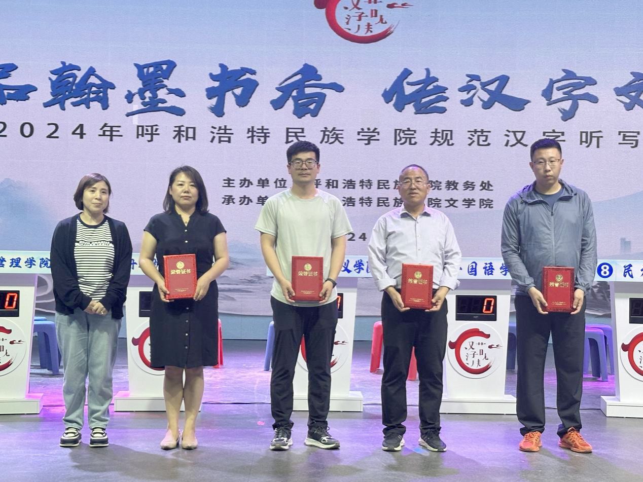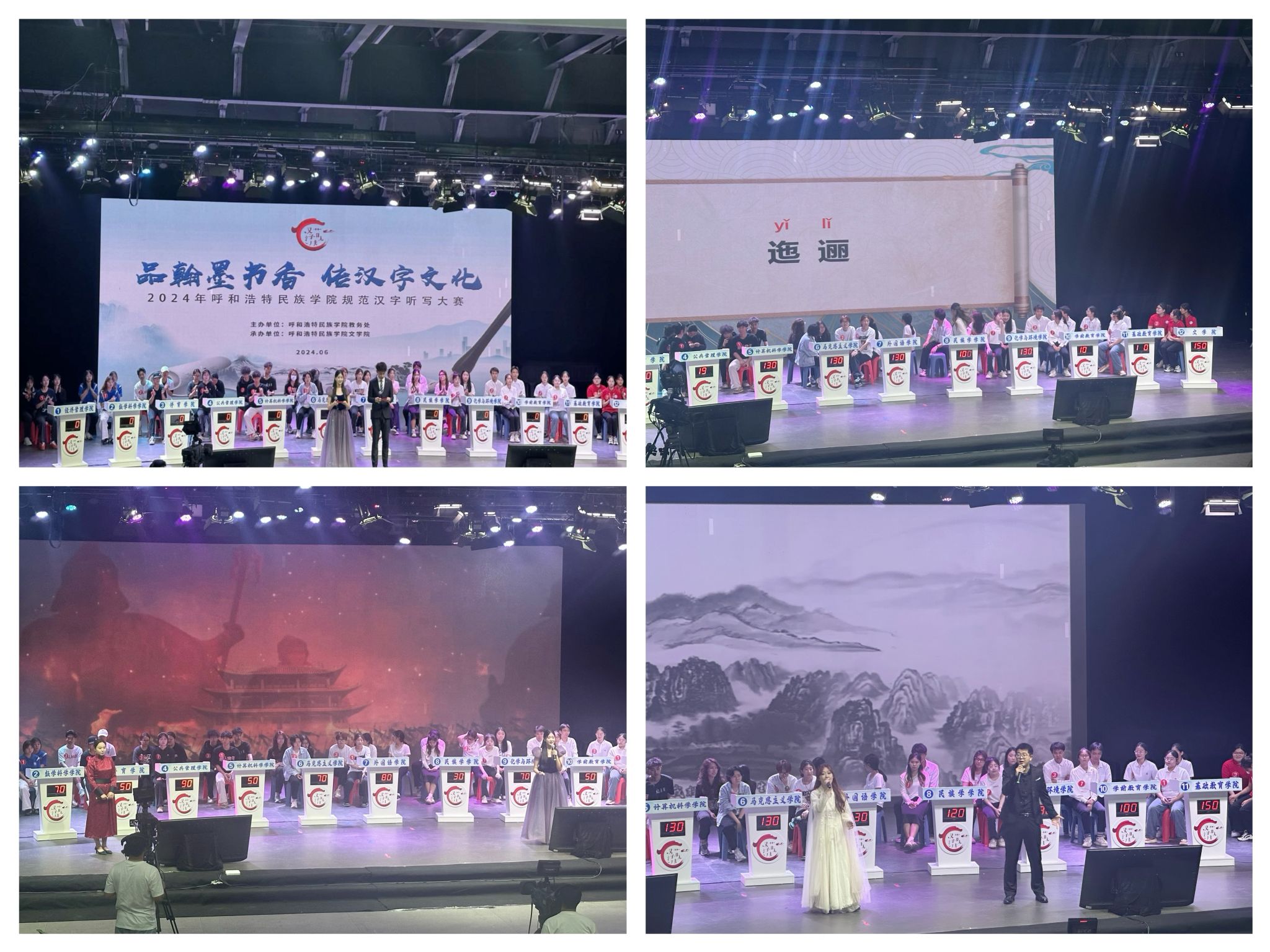 为深入贯彻落实党的二十大精神,高质量推广和普及国家通用语言文字,传承弘扬中华优秀语言文化,6月6日,学校在演播厅成功举办了规范汉字听写大赛决赛。本次大赛由教务处主办,文学院承办,学校党委副书记、校长韩伟新、学校党委委员、副校长刘瑞鸿莅临现场观摩指导,党政办主任包仓致开幕词。全校共12支队伍36名学生参加比赛,由王俊霞、杜勍妹、乌兰哈斯、朱乌云嘎、梅花担任评委,文学院院长高娃担任主考官。
