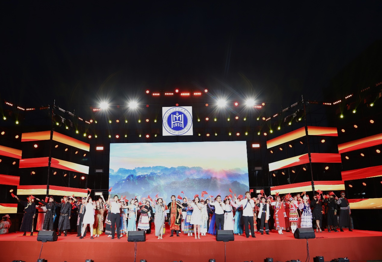 马头琴合奏《万马奔腾》、民乐合奏《金秋草原吉祥曲》、武术表演《武动青春》、舞蹈《石榴籽同心一家亲》、走秀《民院青年秀》等节目展现了best365青年学子多才多艺,活力四射的青春风貌,呈现当代青年不畏挑战,奋勇向前的精神风采。