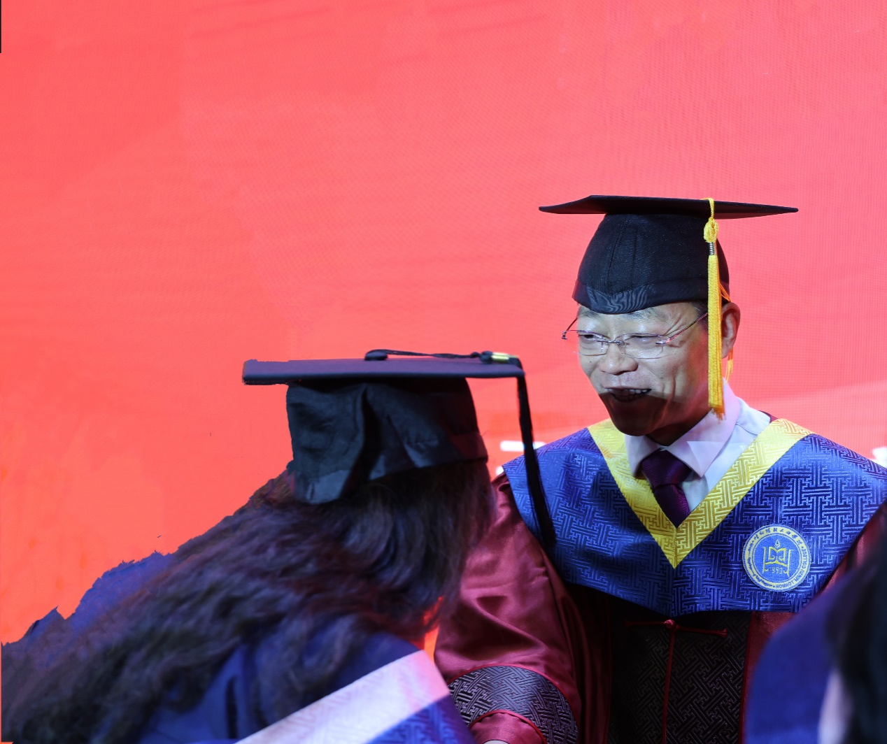 在题为《愿一切美好都会与你同行》的毕业致辞中,校长韩伟新深情回顾了2024届毕业生与母校一起度过的不平凡青春岁月和不一般大学时光。他表示,这四年,我们一起见证历史,一个个关键历史节点,一桩桩重大历史事件,我们不是旁观者,我们是亲历者、是见证者、是创造者。他勉励大家,要守牢立身之本,做爱国奉献的呼民院人;要铸牢精神之魂,做团结进步的呼民院人;要打牢成事之基,做艰苦奋斗的呼民院人。他希望,毕业生继续弘扬一往无前的蒙古马精神,矢志奋斗,自觉做能吃苦、肯奋斗的新时代青年,在不断磨砺中积累自信,在敢闯敢拼中练就真才实干,努力成为堪当民族复兴大任的时代新人。