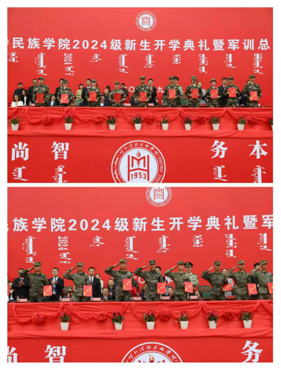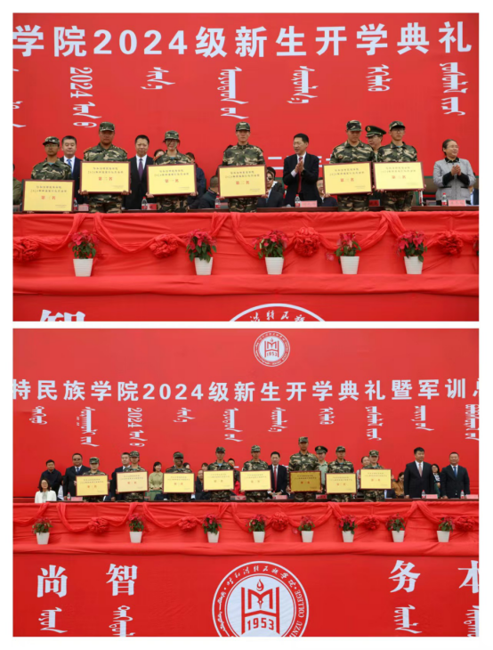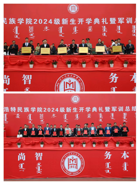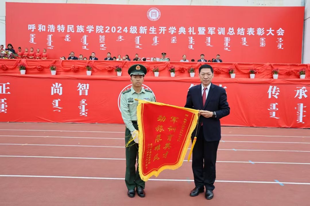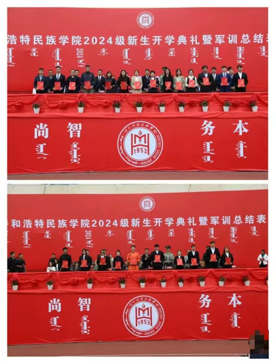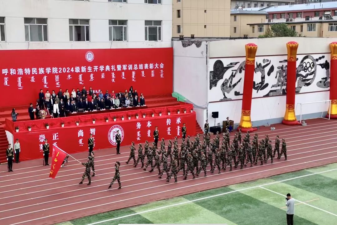 金秋启学序,焕彩新气象。9月14日上午,学校在南院操场举行2024级新生开学典礼暨军训总结表彰大会。校党委书记刘九万,党委副书记格根哈斯,党委委员、纪委书记、监察专员王冬梅,党委委员、副校长双虎,新城区人民武装部政委宋晓光,各部门、各学院负责人,辅导员、新生班主任及全体2024级学生共2400余人参加了大会。