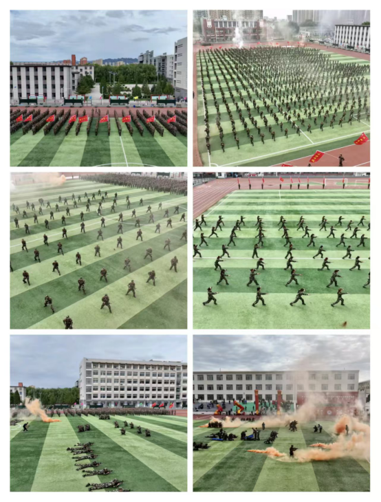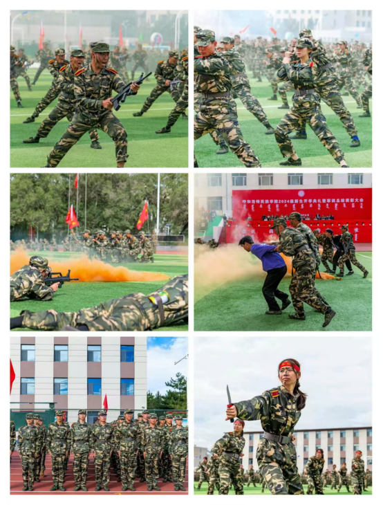 扬青春激情,显豪迈风采。军训学子进行了分列式及汇报演出,擒敌拳,虎虎生威,气势如虹;匕首操,刚柔并济,尽显英姿飒爽;刺杀术,霸气凌厉,充分彰显血性虎气;模拟战场,更是让我们精神振奋,充分展现出了民院学子青春的斗志昂扬,表达了新时代大学生对党的热爱和立志报国的决心。