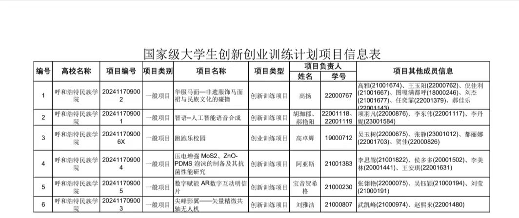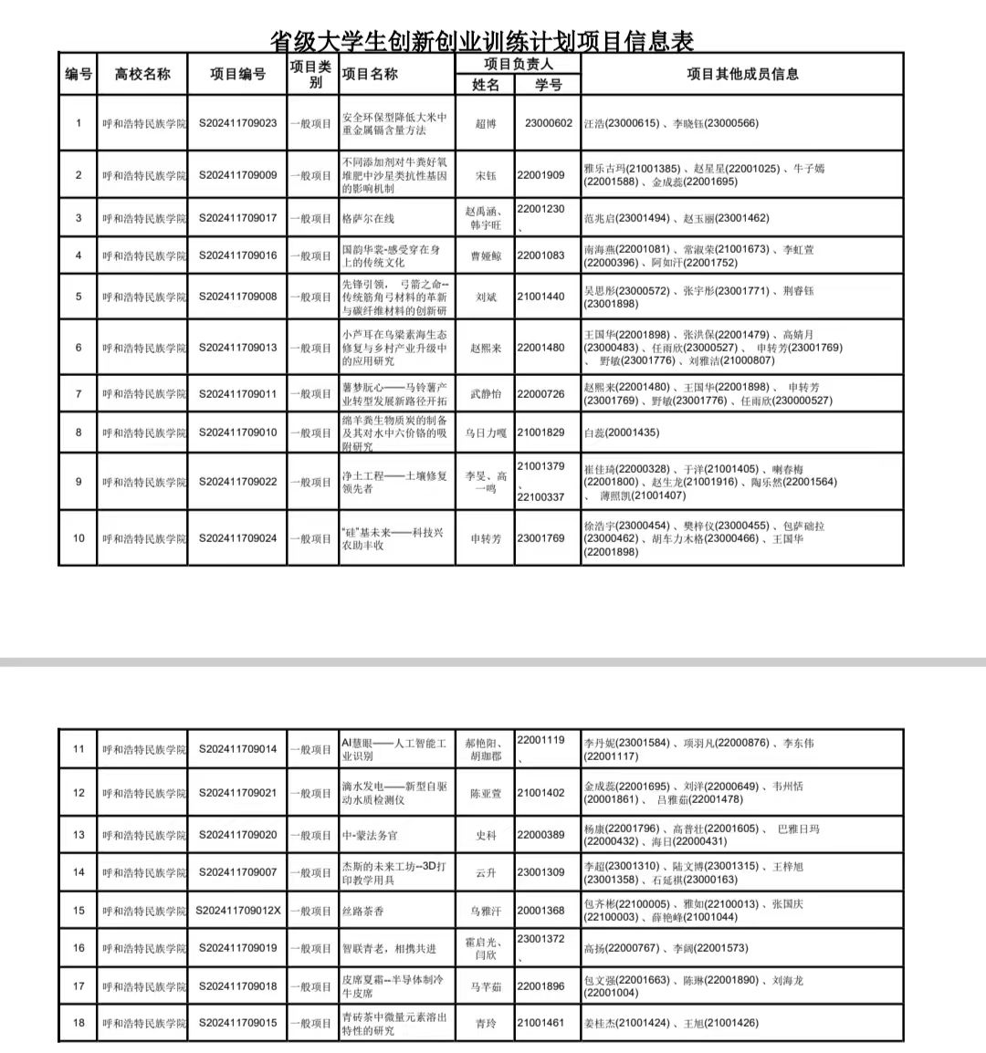 近日,经内蒙古自治区教育厅审核,best365共有24项大学生创新创业训练计划项目成功获批立项。其中,6个项目获批立项为国家级大学生创新创业训练计划项目,18个项目获批立项为自治区级大学生创新创业训练计划项目。