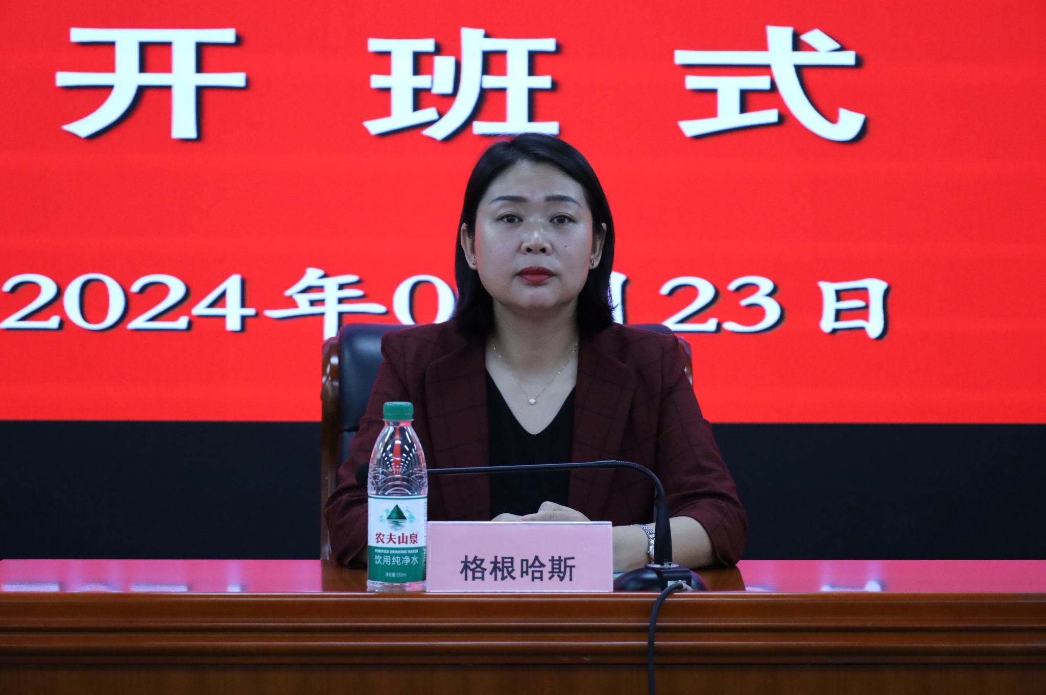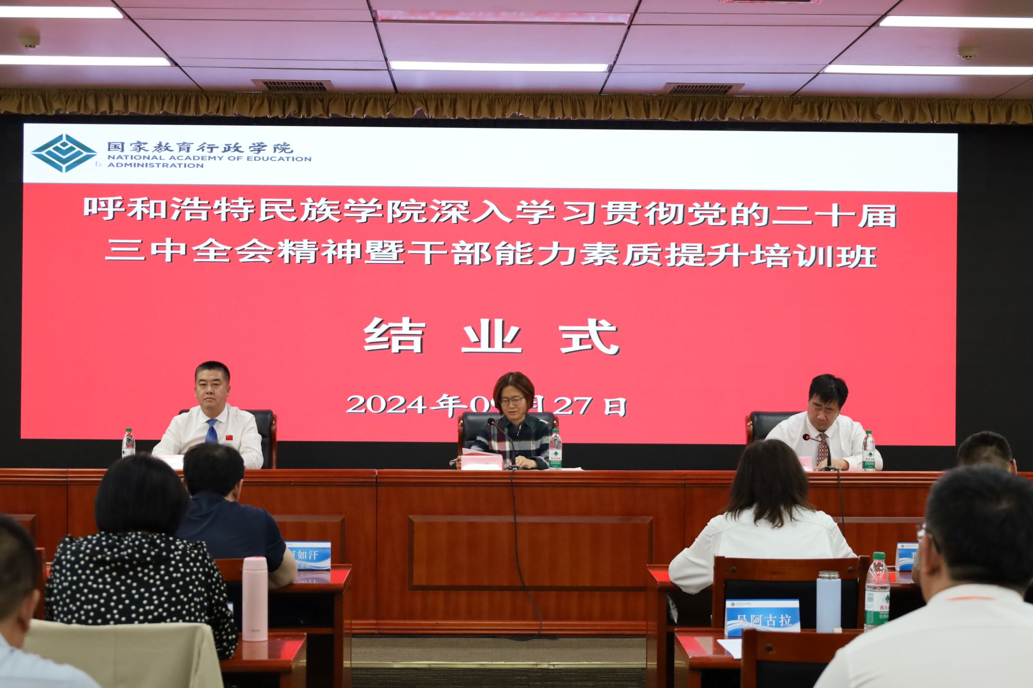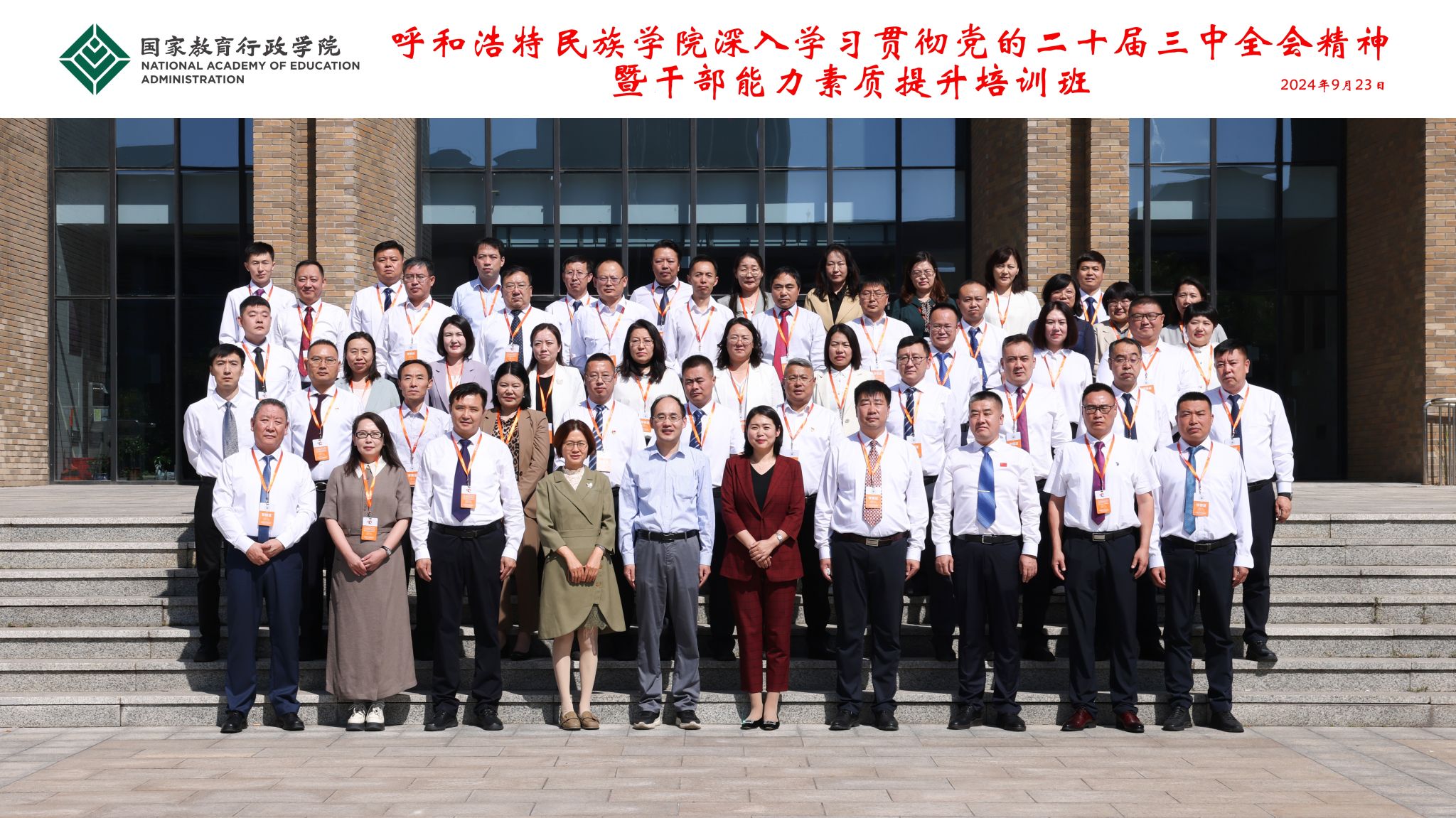 在9月23日的开班仪式上,国家教育行政学院高校管理教研部教授许杰致欢迎辞。学校党委副书记格根哈斯作动员讲话,强调全体学员要提升政治站位,准确把握党的二十届三中全会精神的核心内容,坚持以学促干、全面提升推动发展的能力本领,端正学习态度、严肃培训纪律锤炼过硬作风,做到学有所悟、学有所获、学有所成,真正把学习成果转化为推动学校高质量发展的具体行动和实际成效。