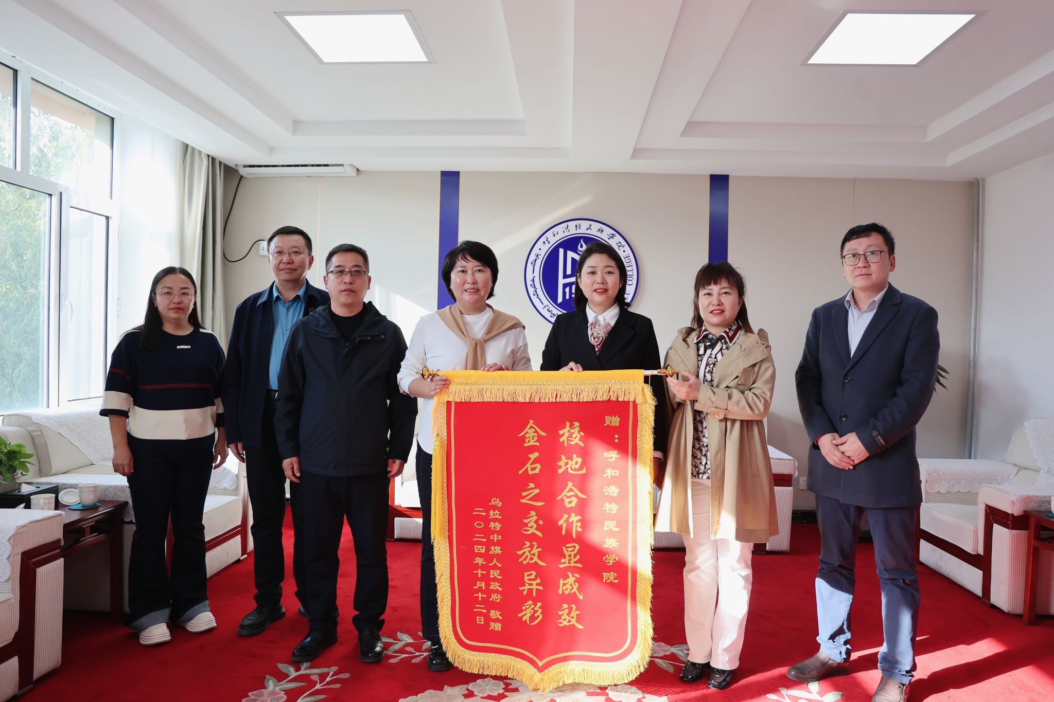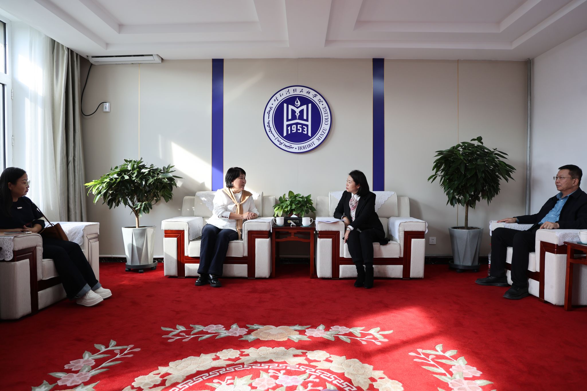 校党委副书记格根哈斯会见了乌拉特中旗副旗长乌日娜一行,格根哈斯就双方的前期合作成果表达了充分的肯定,并对下一步工作给予了指导性建议。随后,新闻传媒学院与乌拉特中旗一行在办公楼会议室开展座谈交流。