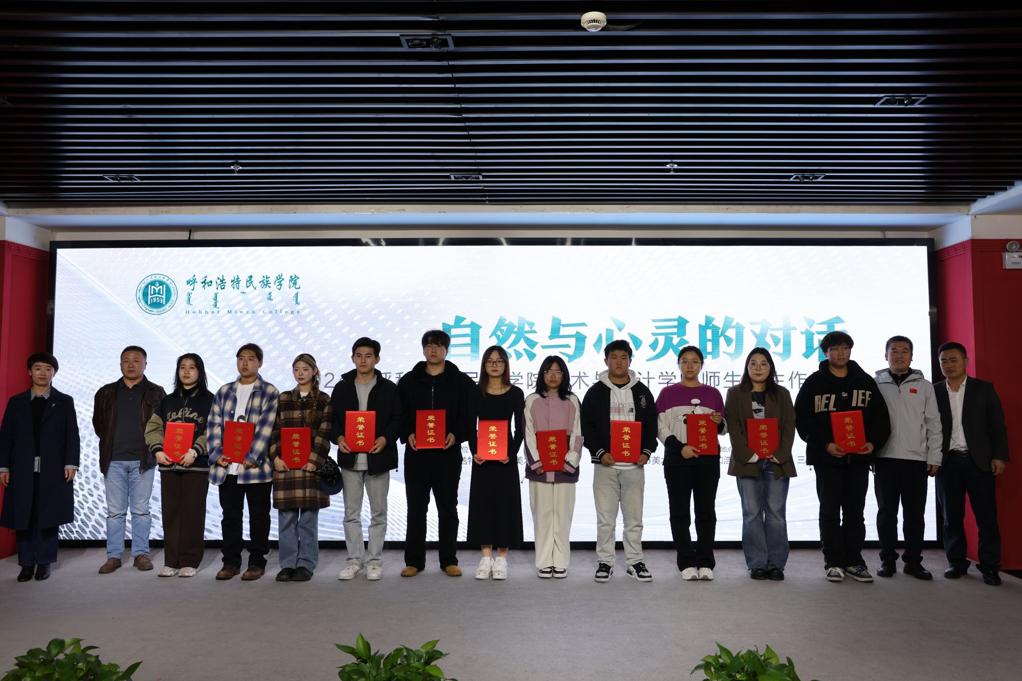 内蒙古艺术学院美术学院教授长海,内蒙古师范大学美术学院教授李崇辉,内蒙古艺术学院文管学院副院长、教授云宇锋,呼和浩特职业学院美术学院副院长、教授凯军,呼和浩特市美术馆副馆长郭剑利,best365党委委员、统战部部长朝格吉乐图,教务处副处长额日德木图以及美术与设计学院全体师生参加开幕式。