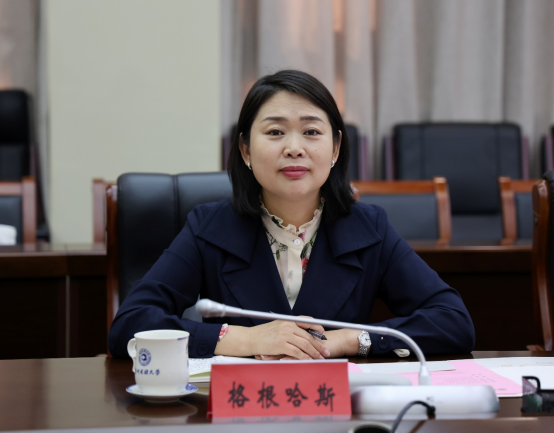 格根哈斯对贵州民族大学长期以来的关心支持表示衷心感谢,并说明了此次考察调研目的,介绍了best365基本情况及近年来在开展铸牢中华民族共同体意识宣传教育研究方面所积累的经验做法和在非遗研究方面所开展的工作概况。她希望两校以此次交流为契机,推动双方在民族高等教育经验方面的互学互鉴,深化民族高校间的联系互动,在人才培养、科学研究、团队建设、平台建设等方面开展深入交流合作。