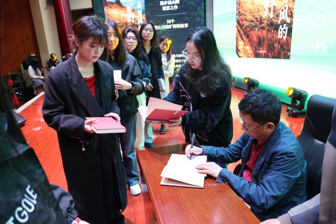 在互动环节,师生们踊跃参与,现场气氛庄重而热烈。阿来结合自身的生活和创作经历,耐心细致地与同学们分享阅读和写作的经验。他告诉同学们:“要真正走进自然,深入理解世界,真实感受生命。”同时,阿来鼓励同学们多读书、多行走,不断拓宽视野,丰富自己的内心世界。