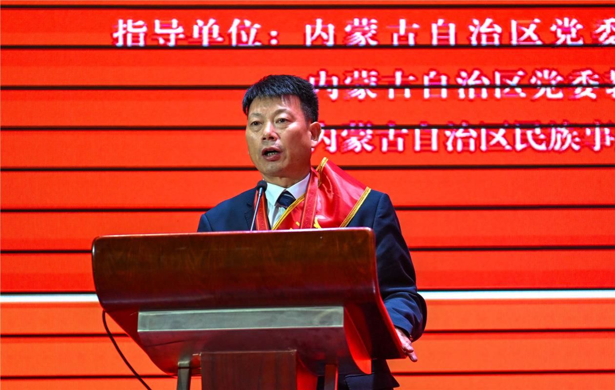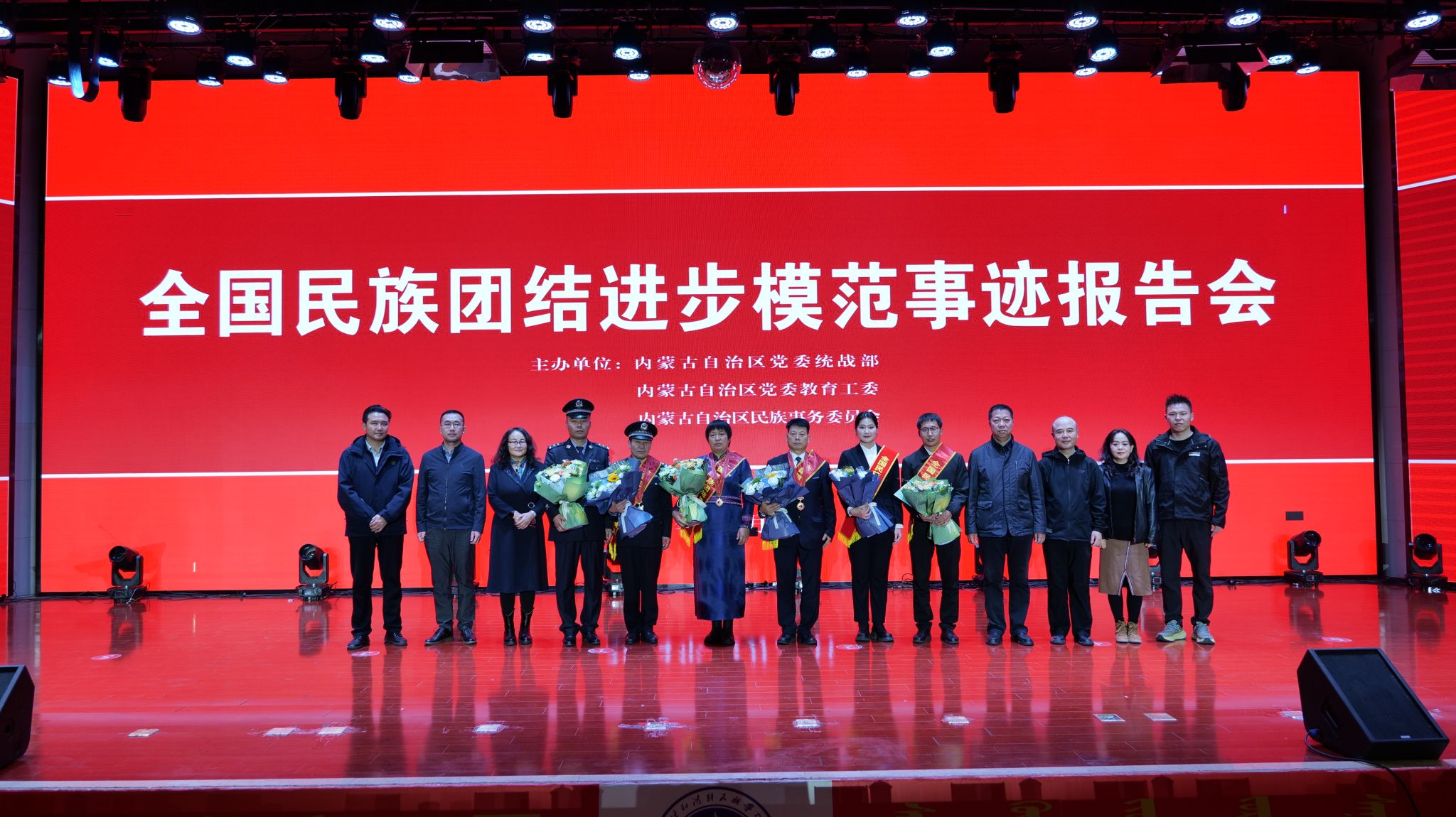 为深入学习贯彻落实习近平总书记在全国民族团结进步表彰大会上的重要讲话精神,充分发挥好模范典型引领作用,大力宣传全国民族团结进步模范集体和模范个人的事迹和贡献,营造崇尚模范、学习模范、争当模范的浓厚氛围,10月31日,由内蒙古自治区党委统战部、内蒙古自治区党委教育工委、内蒙古自治区民族事务委员会主办的全国民族团结进步模范事迹报告会在best365成功举行。自治区民委党组成员、副主任康宇凤,自治区党委统战部宣传教育处处长杨洁,自治区党委统战部二处副处长高鹏华 ,自治区教育工委宣传部、统战部部长,自治区教育厅思想政治工作处处长刘惠,自治区民委办公室正处级干部刘智博,自治区民委民族团结促进处处长李日树、副处长巴萨日娜,校党委书记刘九万,党委委员、副校长高喜天,党委委员、副校长双虎出席活动;自治区驻呼各高校、best365师生代表共600余人到会聆听。
