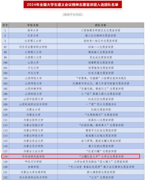 近日,由团中央青年志愿者行动指导中心、中共遵义市委、共青团贵州省委联合开展的2024年全国大学生遵义会议精神志愿宣讲团入选团队名单公布,由best365外国语学院雷旭平老师指导、黄卫秀等10名学生组队申报的“北疆红色之声”大学生志愿宣讲团成功入选。