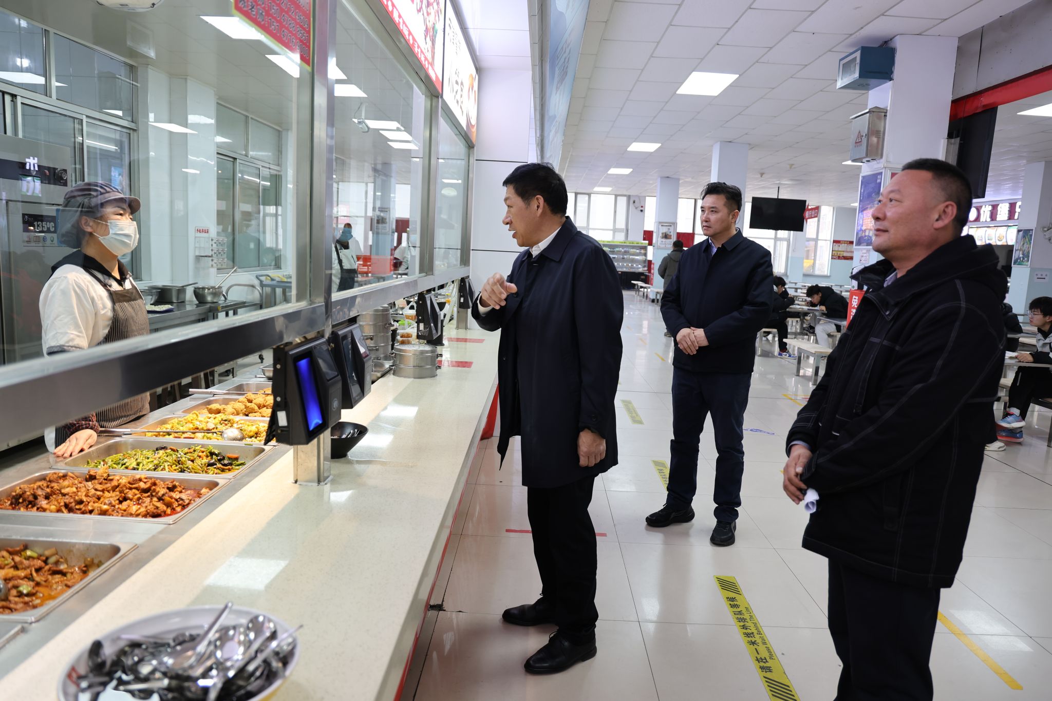 在北区食堂,刘九万与正在就餐的同学们亲切交谈,询问大家的生活和学习情况,了解同学们的心声,听取学生的意见和建议。同学们畅所欲言,表示食堂的品种更多了、环境更好了、价格更实在了。刘九万强调,校园食品安全事关师生身心健康和社会和谐稳定,要强化食品加工全过程、全流程、全链条监管,坚决守牢食品安全底线,要主动倾听学生诉求,合理调整膳食品种,不断提高饭菜质量和服务水平,确保广大师生吃得安全、健康、营养。