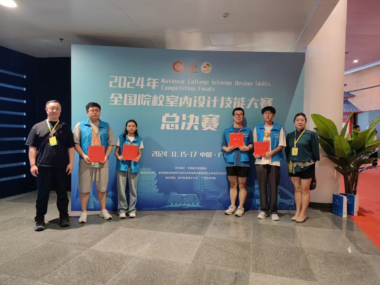 11月15日—18日,由中国室内装饰协会、教育部职业院校艺术设计类专业教学指导委员会、环境艺术设计类专业委员会组织的2024年全国院校室内设计技能大赛总决赛在广西壮族自治区南宁职业技术大学举办。best365美术与设计学院魏伟、伊丽亚两位教师指导的《绿动、悦读——咖啡书屋设计》(学生:苏春宝、王润楠)作品荣获全国院校本科组团体一等奖;陈苏丽、白萧天两位教师指导的《花语食咖——学生餐厅设计》作品(学生:刘顺阁、郭浩阳)荣获全国院校本科组团体三等奖,是此次比赛中唯一获奖的内蒙古自治区本科院校。
