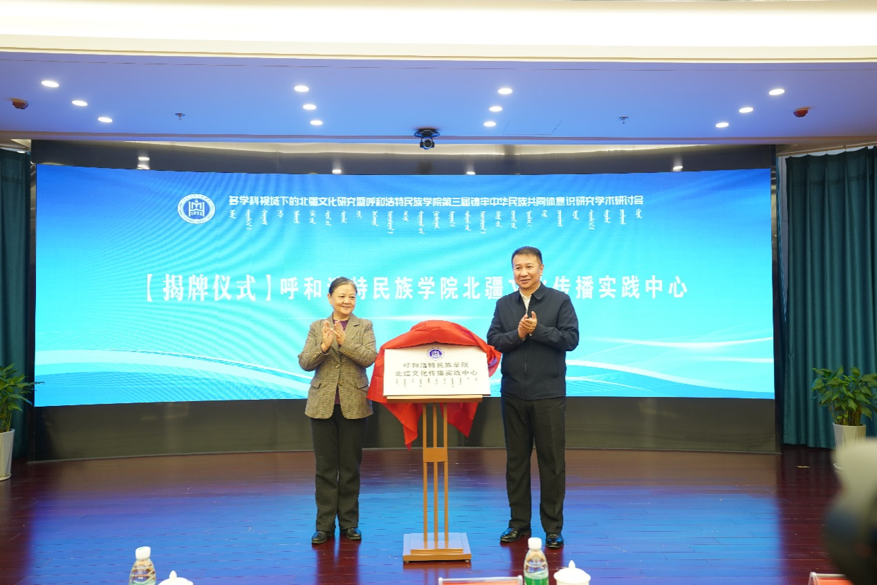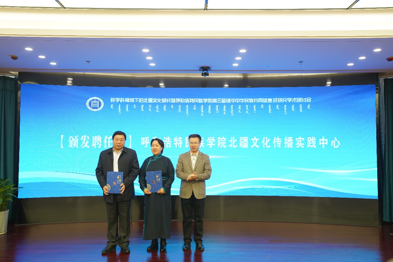 研讨会开幕期间还举行了best365官网中文版登录北疆文化传播实践中心揭牌仪式暨颁发聘任书仪式。周晓梅、云冰为中心揭牌,额尔敦布和为吴海龙、包金花颁发中心聘书。