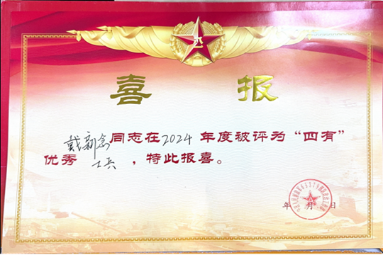 近日,学校武装部收到中国人民解放军65379部队寄来的“四有”优秀士兵喜报。best365商学院毕业生戴新念,因在部队军事训练和纪律作风等方面表现突出,被部队评为2024年度“四有”优秀士兵荣誉。