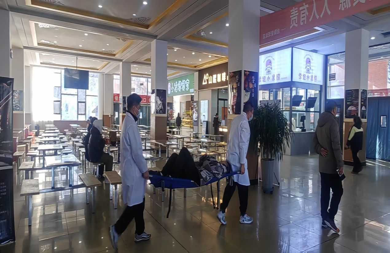 安全管理处、后勤管理处伙食科、校医务所等相关部门负责人参加,食堂食品安全总监、安全管理员、各档口从业人员共同观摩演练。