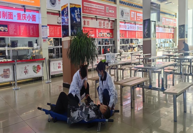 此次演练内容有食物中毒应急处置和火灾应急处置两项演练。参加的各部门通力合作、高效配合,共同模拟了疑似案例处置的全过程。