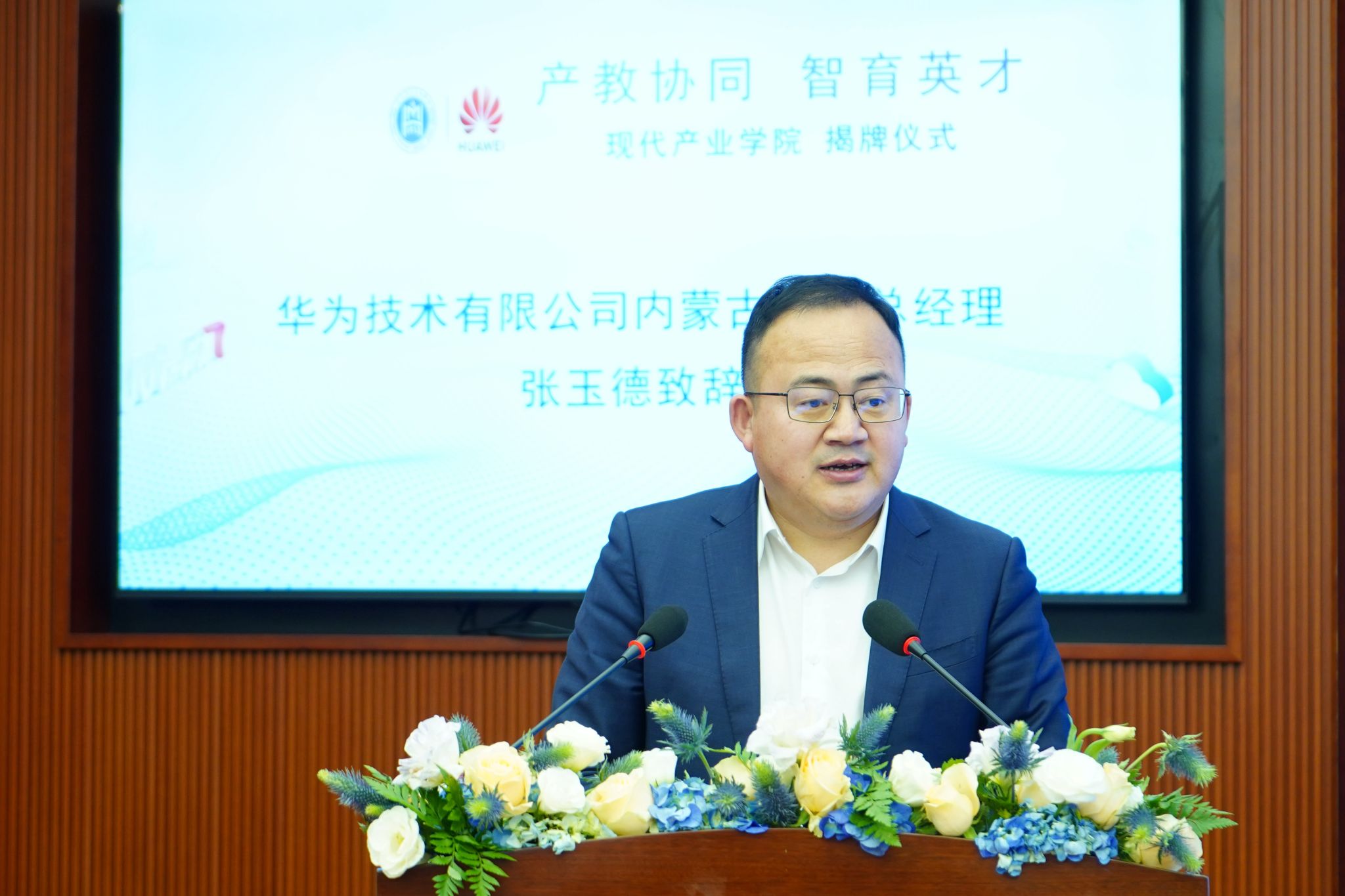 额尔敦布和在仪式上致辞。他简要介绍了学校的办学历史,表示学校高度重视现代产业学院的建设工作。他指出,今天的揭牌仪式标志着best365与华为在产教深度融合、协同育人方面迈出了坚实的一步,也是贯彻新发展理念、对标教育部现代产业学院建设标准的有力实践。他希望,现代产业学院在人才培养的道路上不断前行,进一步拓展合作领域,深化合作层次,不仅在技术研发、成果转化等方面加强协同创新,更要在国际交流与合作中共同探索新机遇,助推学院提升国际影响力。