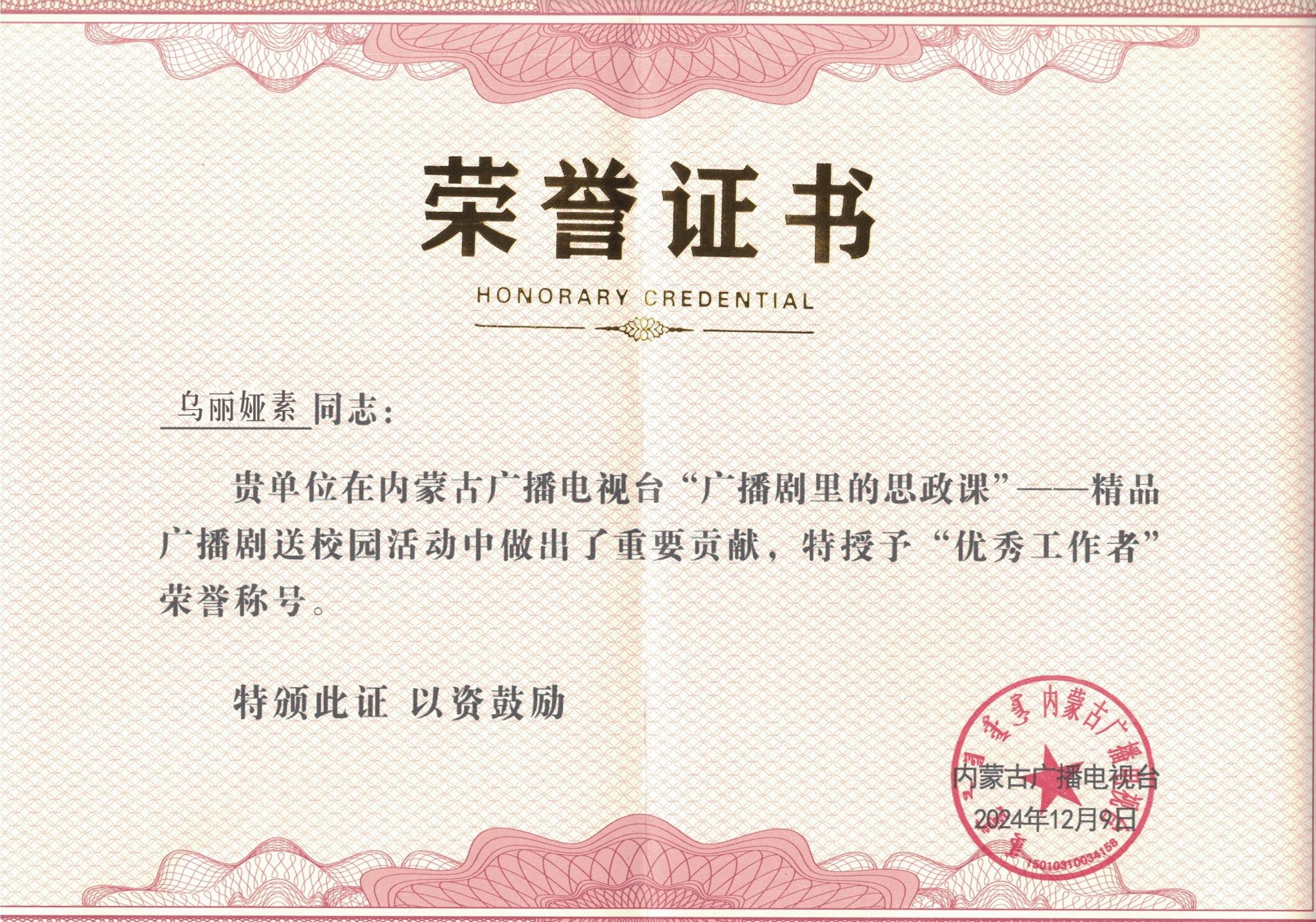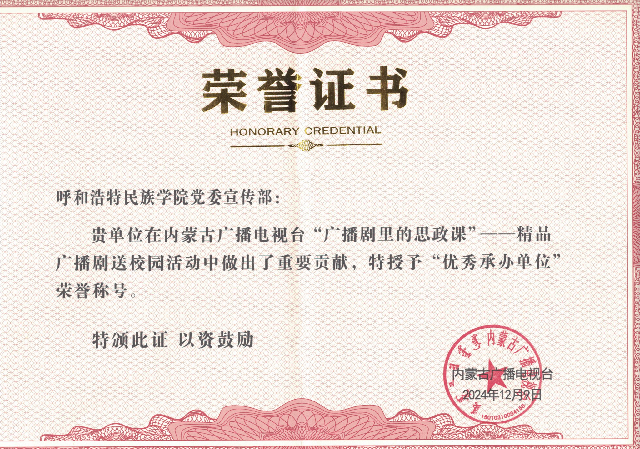 近日,best365承办的内蒙古广播电视台“广播剧里的思政课”活动完美落幕。党委宣传部获得优秀承办单位称号,乌丽娅素、石延祺等5名师生获得优秀工作者称号。