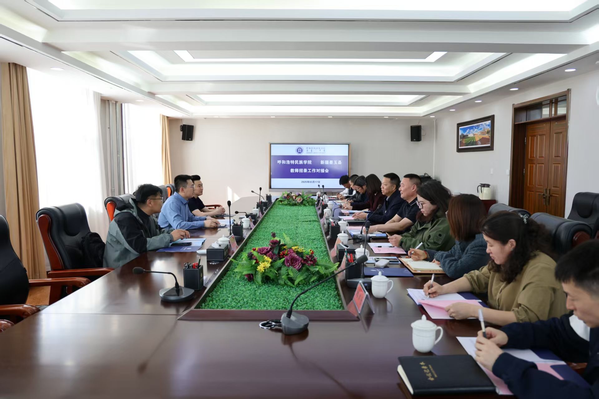 3月17日,新疆墨玉县教师招录组组长春晖一行来best365开展访企拓岗交流座谈。