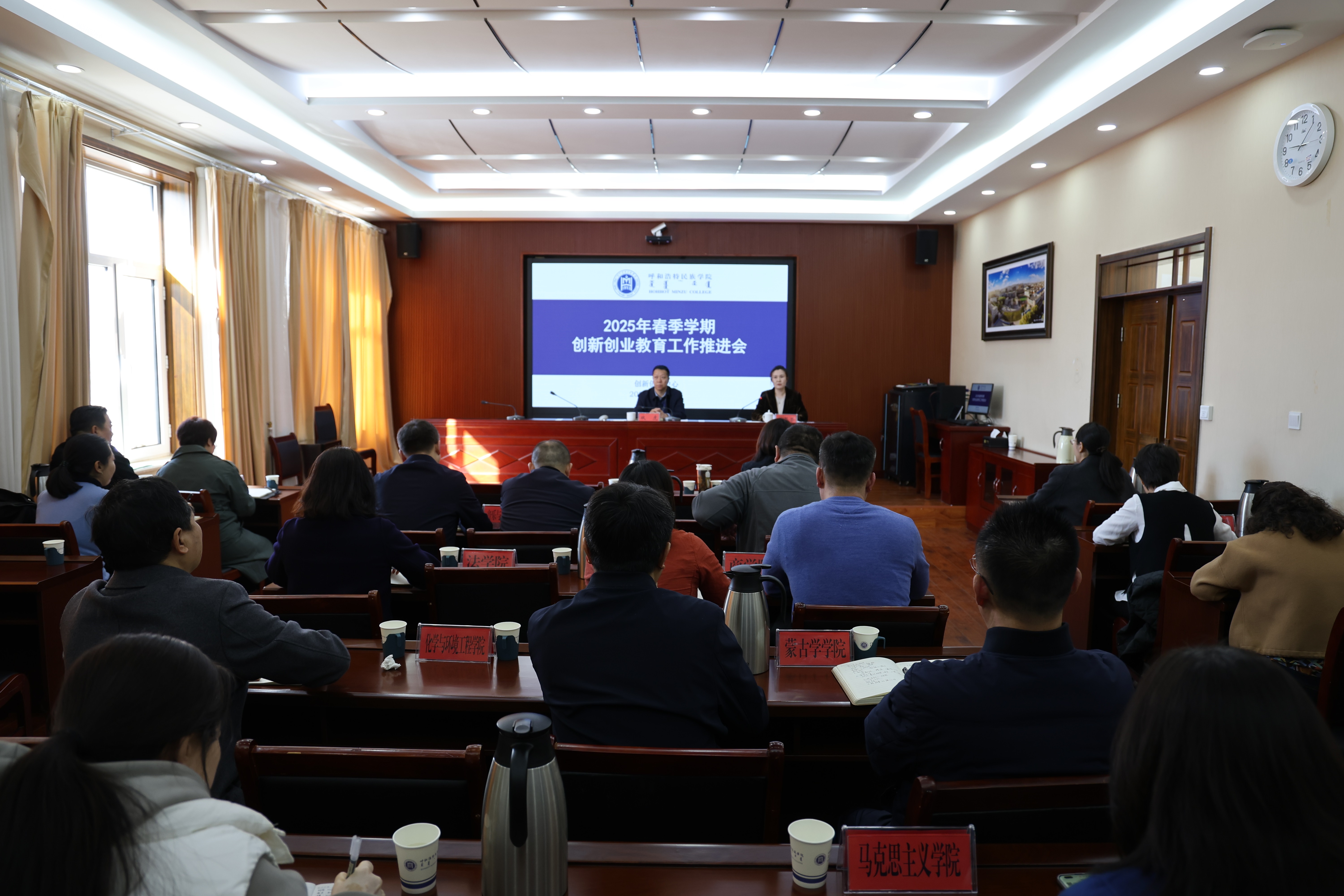 3月21日,学校2025年创新创业工作推进会在办公楼四楼会议室召开。校党委委员、副校长双虎出席会议并讲话。创新创业中心主任佟繁荣主持会议。