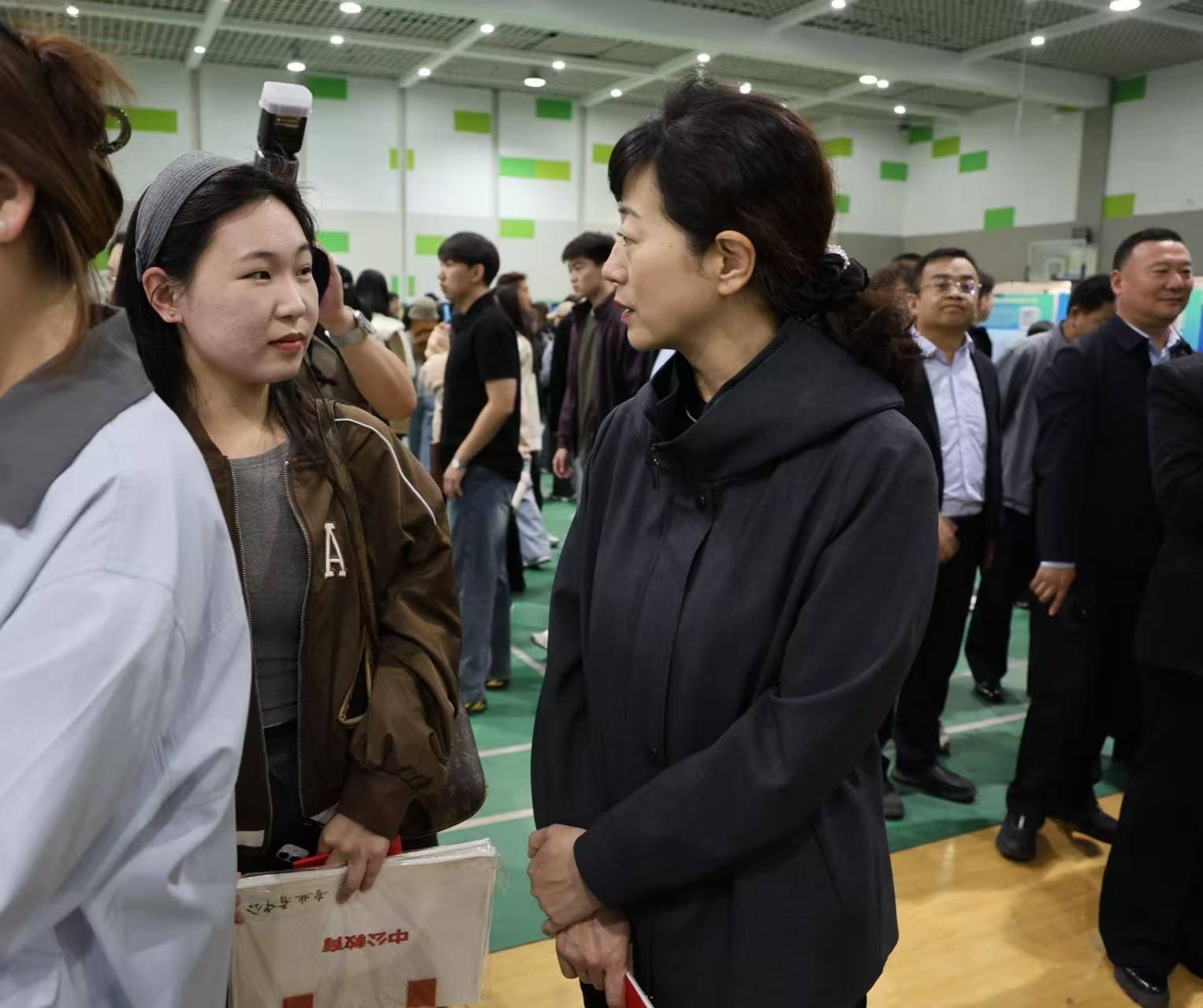 招聘会期间,校党委副书记、校长王敏,党委委员、纪委书记、监察专员王冬梅,党委委员、副校长额尔敦布和、双虎等校领导深入招聘会现场,了解用人单位岗位需求,并与求职毕业生作现场交流,鼓励她们积极就业。