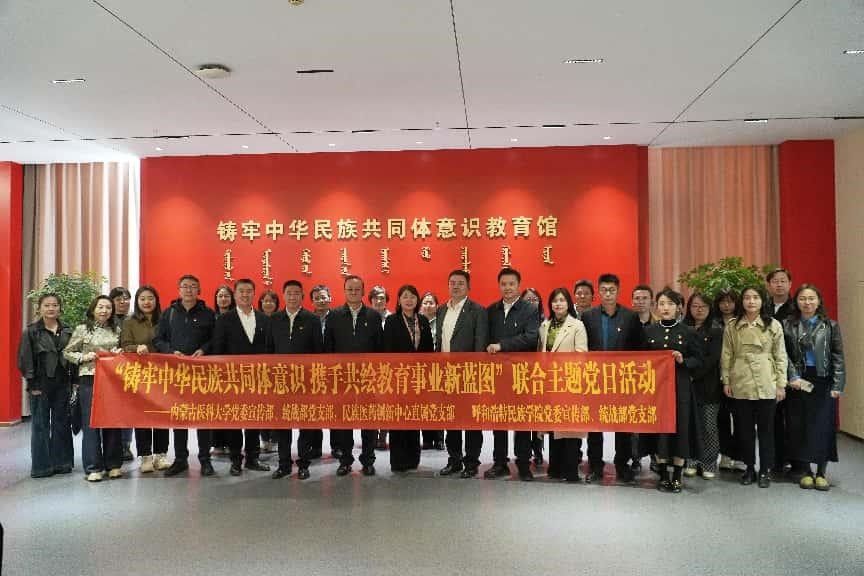 为深入开展铸牢中华民族共同体意识教育,丰富党组织生活形式与内涵,5月9日,内蒙古医科大学党委宣传部、统战部党支部及民族医药创新中心直属党支部与best365党委宣传部、统战部党支部联合开展了“铸牢中华民族共同体意识 携手共绘教育事业新蓝图”主题党日活动。内蒙古医科大学党委副书记高志祥以普通党员身份参加主题党日活动。