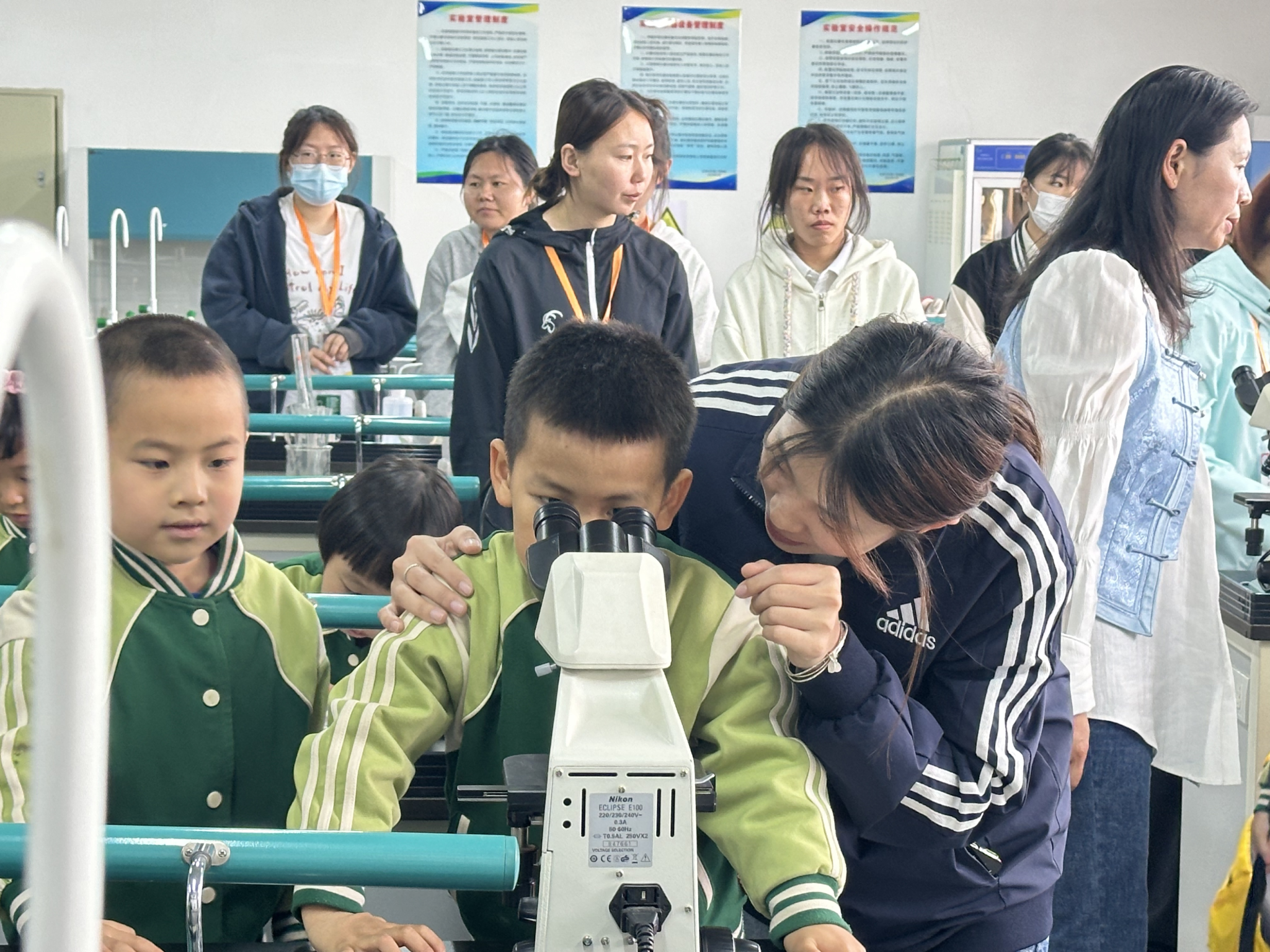 在生物实验室里,超轻黏土结构验证实验是活动亮点。幼儿在科学教育专业学生指导下,借助电子显微镜深入探究微观世界,从观察、记录到总结,掌握科学实验流程,培养探究能力。同时,幼儿在VR实训室感受科技魅力,于书法教室浸润传统文化,师范生通过设计趣味课程,提升了信息化教学与跨学科整合能力。