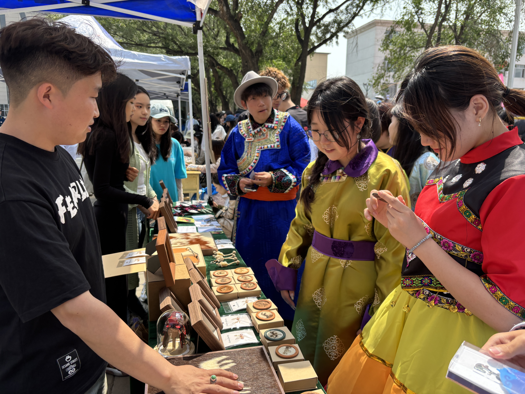 本次活动结合学校正在开展的北疆文化非遗活动——校园那达慕文化节开展,活动涵盖版图知识科普进校园、中蒙医药文化进校园、公积金政策咨询服务进校园、56路公交车民族政策宣传进校园以及美术与设计学院非遗成果展示等系列活动,现场为同学们进行非遗黄油灸、把脉义诊、葫芦艾灸咨询服务和政策宣传等内容。