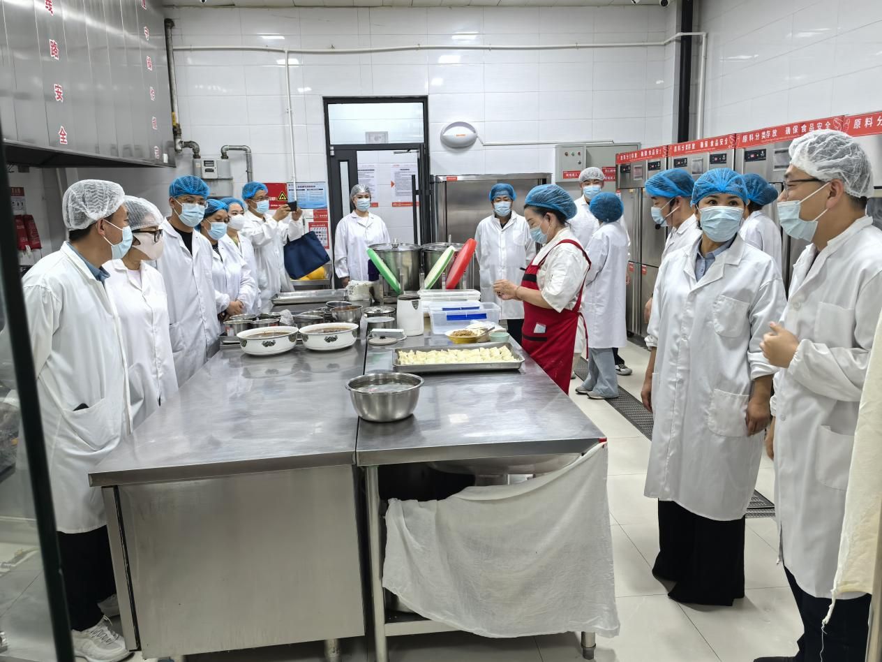 首先,参会人员深入食堂一线,详细了解食堂后厨操作流程、餐具洗消流程及从业人员的管理情况。