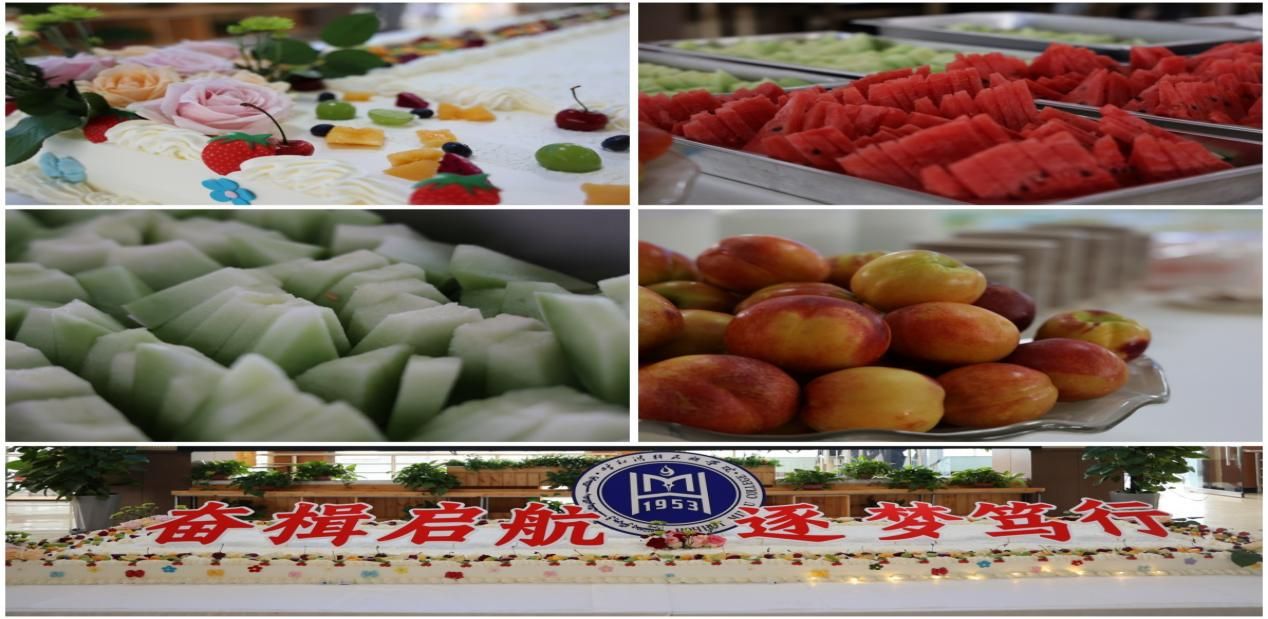为表达对毕业生的关怀与祝福,学校精心筹备,为大家准备了免费的水果、饮料和蛋糕。水果新鲜欲滴,饮料种类丰富,蛋糕造型精美,每一处细节都饱含着学校对毕业生的深情厚谊。