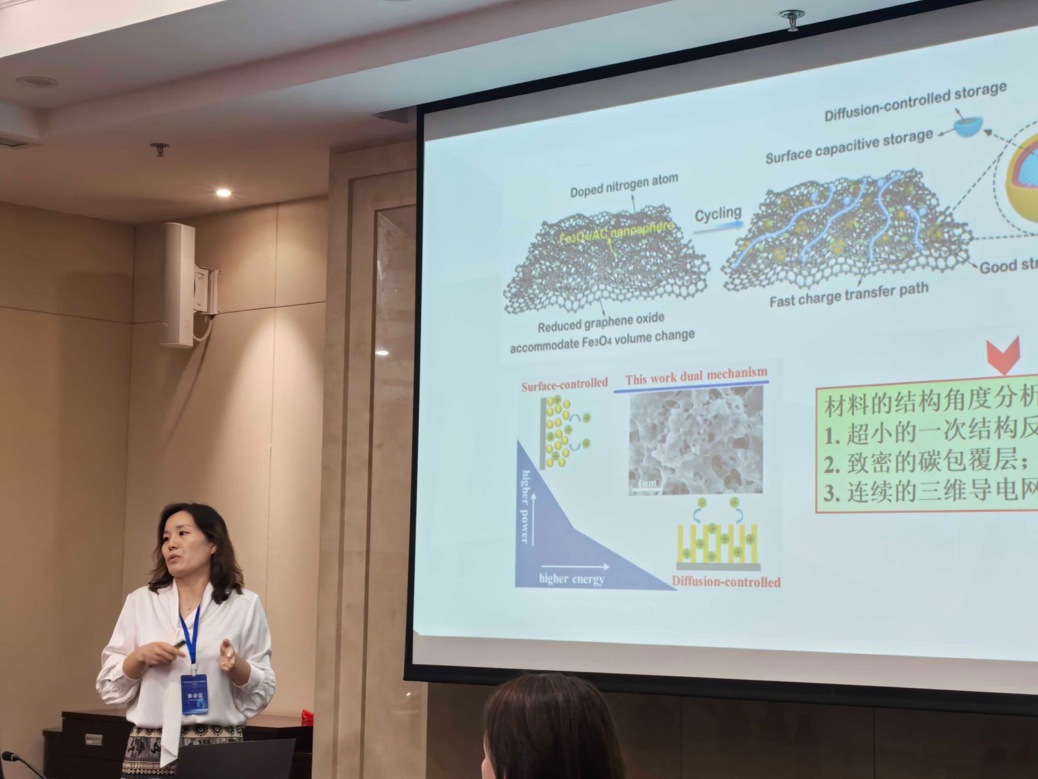 本次会议以“筑牢生态安全屏障 共助人与自然和谐”为主题,紧密围绕习近平总书记交给内蒙古的“五大任务”,致力于加强中俄蒙三国边境地区的生态保护和荒漠化防治,为筑牢祖国北疆绿色生态屏障、打造北疆亮丽风景线分享学术观点,交流科研成果。会上,丁冉冉老师分享了“助力绿色低碳发展——转化型负极材料的储锂特性研究”的研究成果,萨仁其其格老师作了“在线反应/富集/分离技术在典型生态水体微量污染物形态分析中的应用”的学术报告。