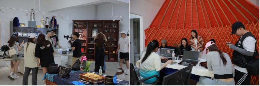 学院师生团队赴乌拉特中旗开展的“北疆文化传播实践”活动,以铸牢中华民族共同体意识主题作品创作、地方文旅视频制作、非遗项目展示及直播为内容和宣传手段,开展了丰富的实践教学活动。在地期间创建并运营抖音账号“走起”、微信视频号“走起1989”,广泛带动学生投身创作,全面宣传乌拉特中旗的自然风光和人文景象。发布41个视频号作品,总播放量达14万+;发布44个抖音作品,总播量放达12万+。实践活动得到了国家民委的肯定性批示,并在全国范围内推广。2024年10月12日,乌拉特中旗人民政府向学校送达感谢信,对学院的支持与协作表示感谢,标志着学院在校地合作方面取得了显著成效。