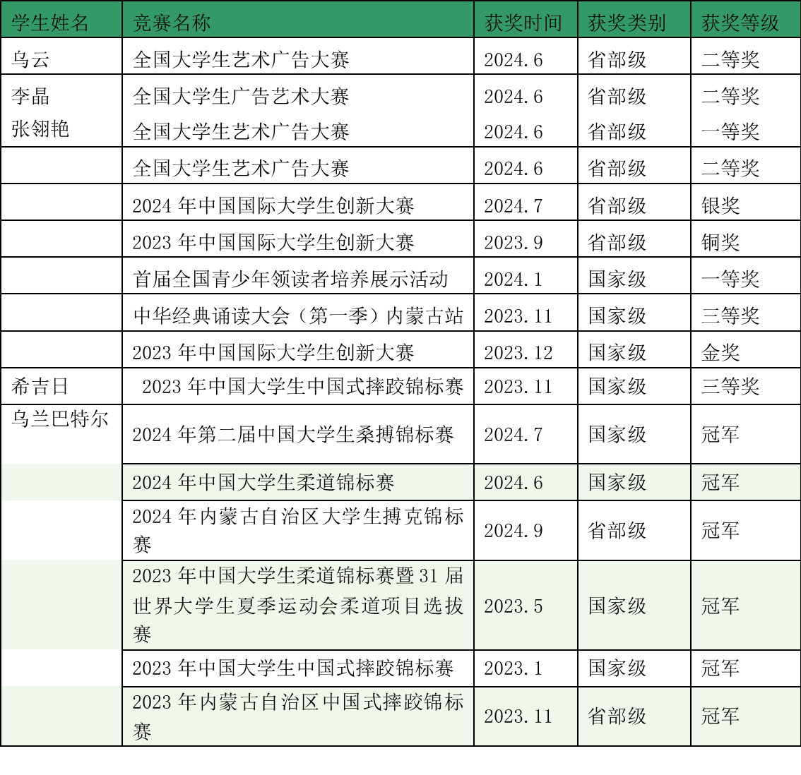 近年学生参加各类竞赛获奖情况