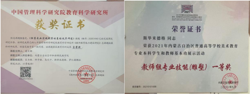 多年来,学院致力于保护和传承中华优秀传统文化为己任,在美术教育、绘画、民间美术产品研发等领域研究成果突出。拥有“蒙古族非物质文化遗产研究基地 ”“北疆民族文化研究基地 ”“草原文化研究基地 ” “民族美术成果创新性转化研究基地”“非物质文化遗产体验馆”等多个科研平台。近五年,教师申报各类项目 38 项;学术论文发表 53 篇;出版专著 19 部;第十三届全国美术作品展览中获获奖提名 1 人,入选 3 人;第十四届全国美术作品展览入选 4 人;教师获得全区艺术创作“ 萨日纳 ”奖 2人;学生参加省级以上美术与设计作品展览300余人次。