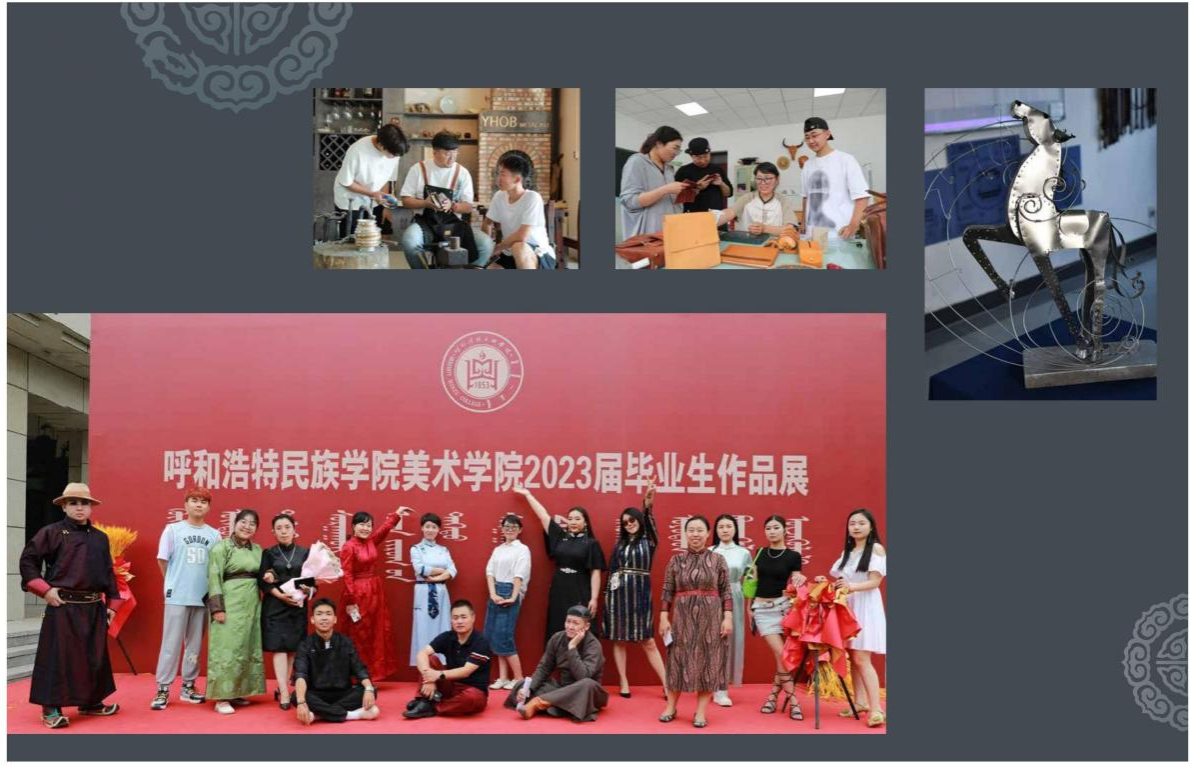 美术教育与思政教育相结合,开展课程思政教育,通过美术创作和教学成果展示,探索以美育人、以美化人、以美培元新途径,培养学生社会责任感和爱国情怀取得了较好成效。立足民族地区特色优势,重点培育特色专业,为民族地区和其他少数民族地区培养了5000余名优秀毕业生。与蒙古国国立教育大学、造型艺术学院,中央民族大学等国内外大学建立学科建设、科学研究、人才培养合作交流关系,与北京东方智业文化发展有限责任公司签署(3+1)模式人才培养协议,与巴彦淖尔市乌拉特中旗签署协同育人合作框架协议,为人才培养创新发展搭建交流合作平台取得了较好的成效。近五年,毕业生国内外高校攻读硕士 42 人,博士 4 人;教师在省级以上展览参展和指导学生参展 338 人次,其中获奖 63 人次。采取就业服务包联帮扶制度,开展访企拓岗工作拓展就业渠道,签署就业实习实训基地 20 余家,应届毕业生就业率显著提升。2025 年初次就业率 86.49%。