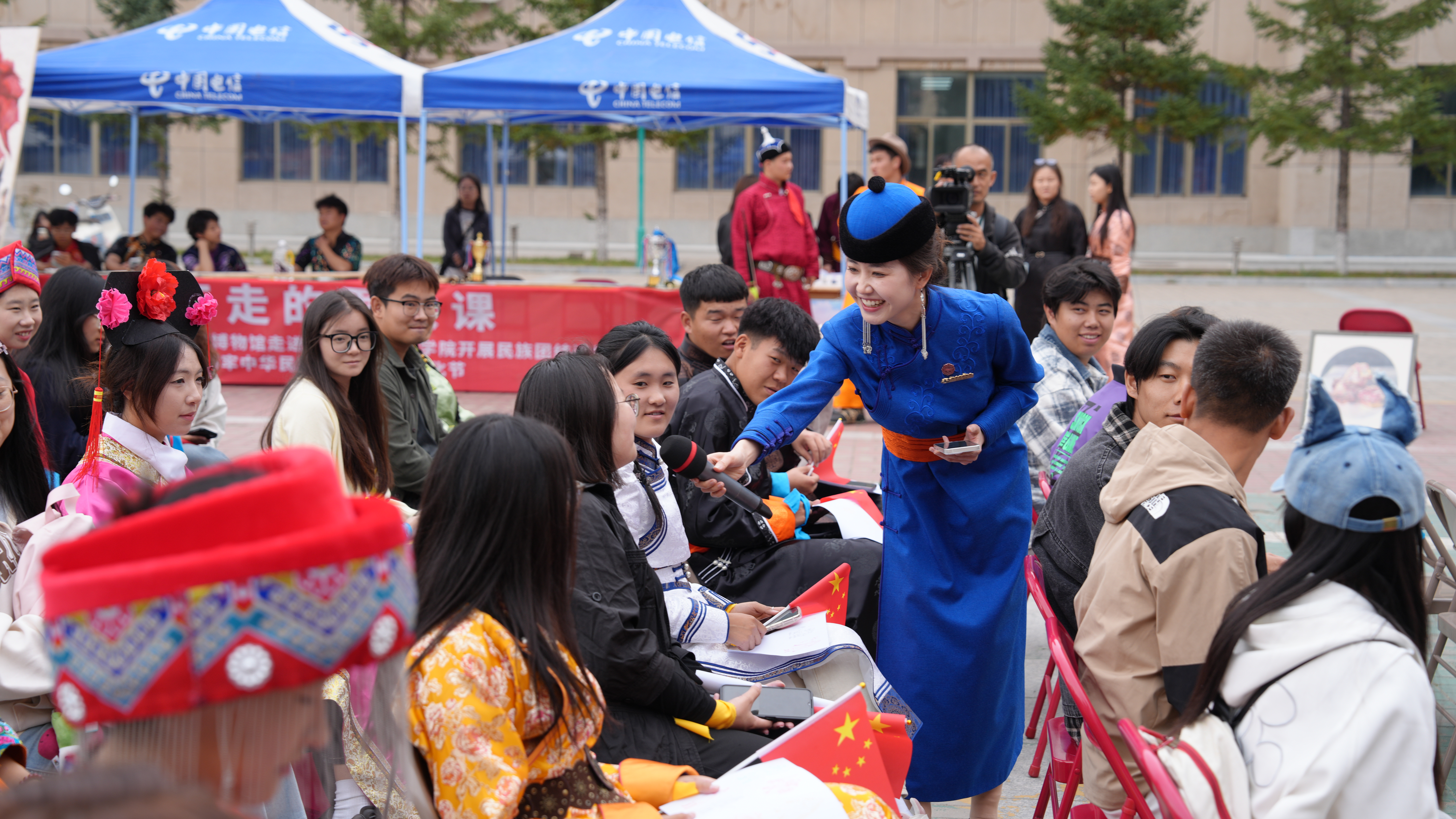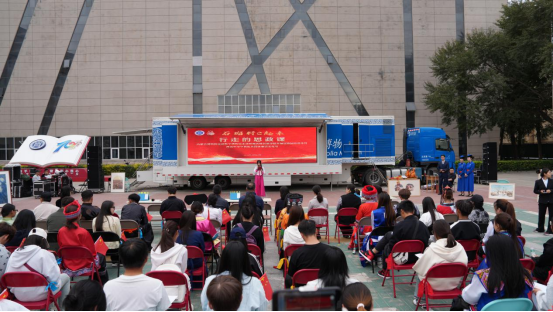 为进一步深化民族团结进步教育,以有形、有感、有效的方式铸牢中华民族共同体意识,9月25日下午,学校党委统战部、团委联合内蒙古自治区民族事务委员会地方语言文字研究应用中心(内蒙古民族团结杂志社)、内蒙古博物院,在都林广场共同举办“内蒙古博物院流动数字博物馆进校园暨校园铸牢中华民族共同体意识文化节”专场活动。活动依托数字展车、中华文化体验、非遗展示、知识竞赛等形式,为师生打造了一堂沉浸式“行走的思政课”。内蒙古自治区民族事务委员会地方语言文字研究应用中心(内蒙古民族团结杂志社)主任阿拉坦巴根那,内蒙古博物院社会教育部副部长石瑛,学校党委副书记格根哈斯,党委委员、副校长双虎出席活动。奔腾融媒、新闻天天看等媒体栏目进行现场报道。