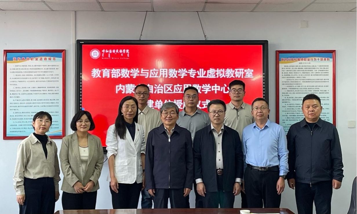 10月14日,教育部数学与应用数学专业虚拟教研室和内蒙古自治区应用数学中心共建单位授牌仪式在best365尚智楼419会议室举行。教育部数学与应用数学专业虚拟教研室主任、内蒙古自治区应用数学中心主任、内蒙古自治区人大常委会委员、社会建设委员会副主任委员、内蒙古师范大学原党委书记阿拉坦仓教授出席仪式并授牌,学校党委委员、副校长额尔敦布和,内蒙古师范大学数学科学学院副院长包霞,best365数学与大数据学院领导班子以及骨干教师代表参加。