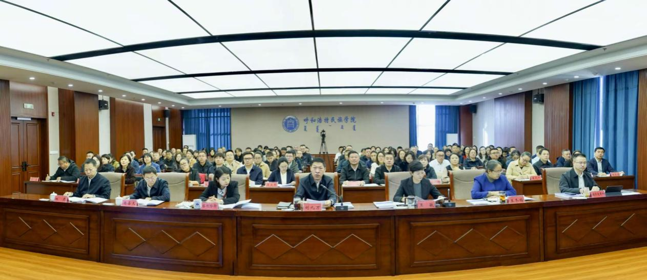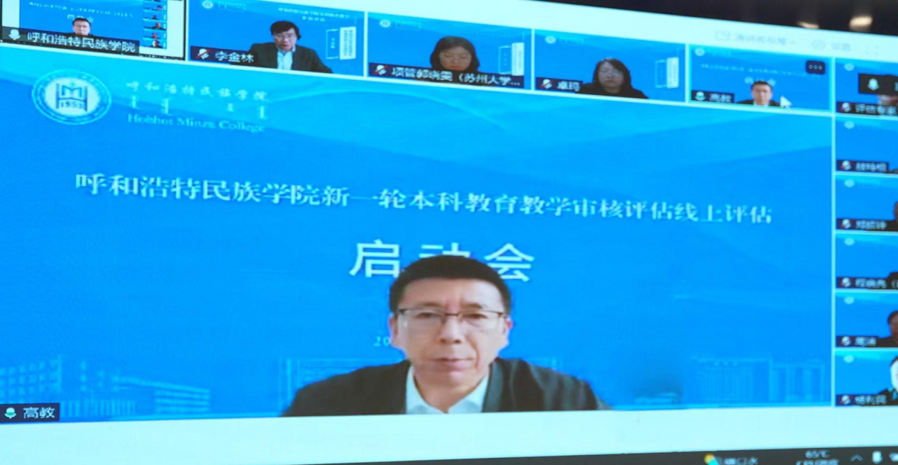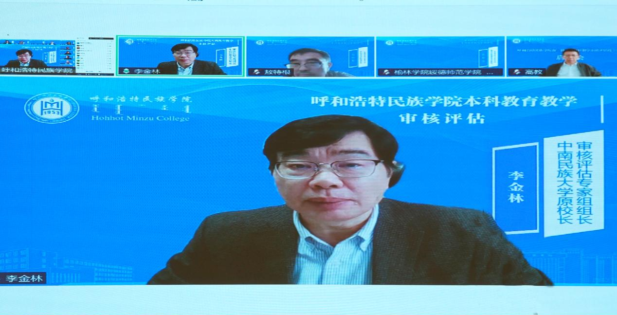 审核评估专家组组长、中南民族大学原校长李金林教授,专家组副组长、赤峰学院党委副书记、校长季祥教授以及专家组全体成员,内蒙古自治区教育厅高教处处长席东民出席线上会议。校党委书记刘九万主持会议。校党委副书记、校长王敏作本科教育教学审核评估工作汇报。校领导班子成员、副处级以上干部及师生代表参加会议。