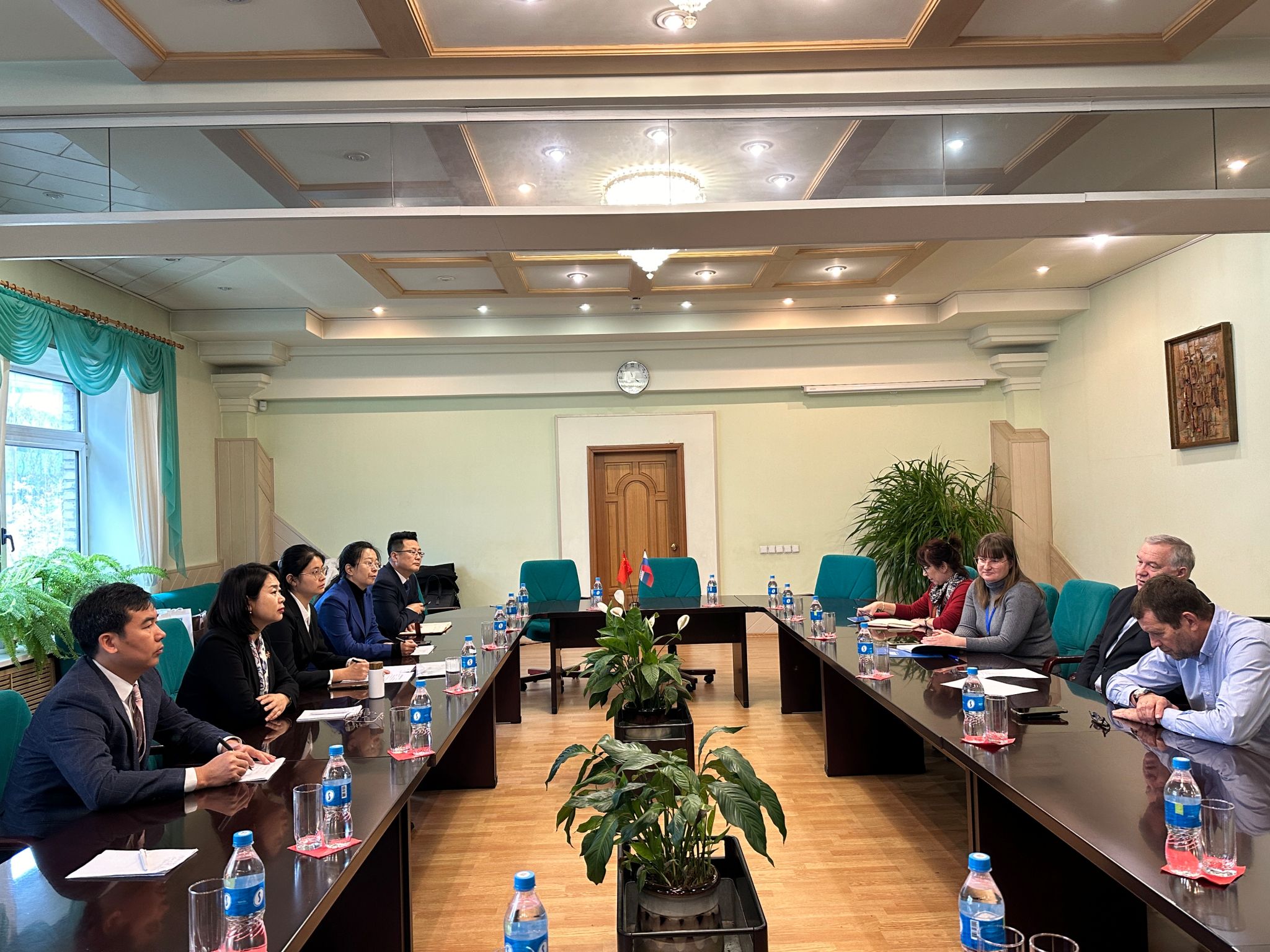 论坛期间,学校出访团在“双边会晤”环节与俄罗斯布里亚特国立大学校长达姆吉诺夫·阿尔达尔·瓦列里耶维奇举行工作会谈。双方就深化既有合作、拓展新的交流领域进行了富有成效的沟通。此外,代表团还与俄罗斯伊尔库茨克国立理工大学、俄罗斯阿列赫姆国立大学的代表洽谈了合作事宜。