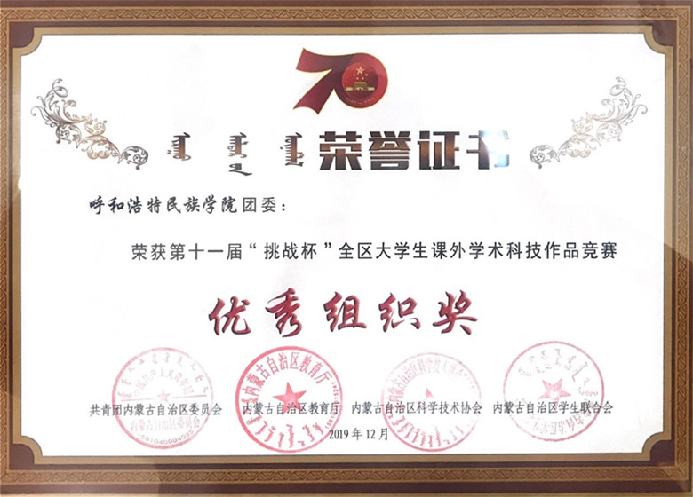 近日,由共青团内蒙古自治区委员会、内蒙古自治区教育厅、内蒙古自治区科学教育协会、内蒙古自治区学生联合会联合举办的第十一届“挑战杯”全区大学生课外学术科技作品竞赛结果公布,best365选送的34组参加省级竞赛的作品,经过初审、复审和终审等环节的比拼,共有30组作品获奖。其中,获得一等奖4项、二等奖7项,三等奖19项,best365团委荣获”优秀组织奖”荣誉称号。